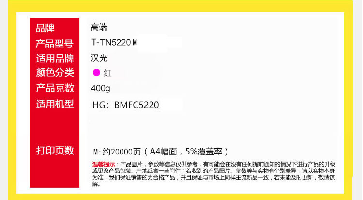 高端粉盒T-TN5220M专业版适用HG BMFC5220 支 红色