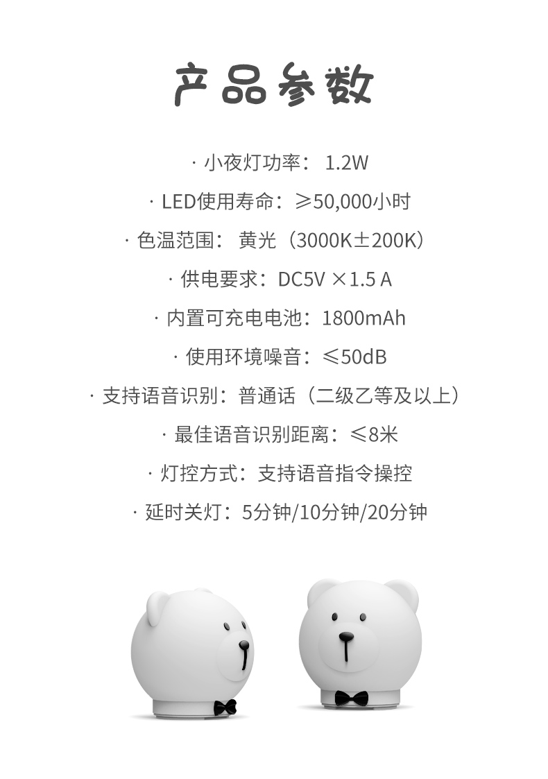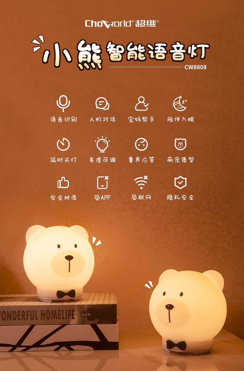 超维 小熊智能语音灯 CW8808 白色