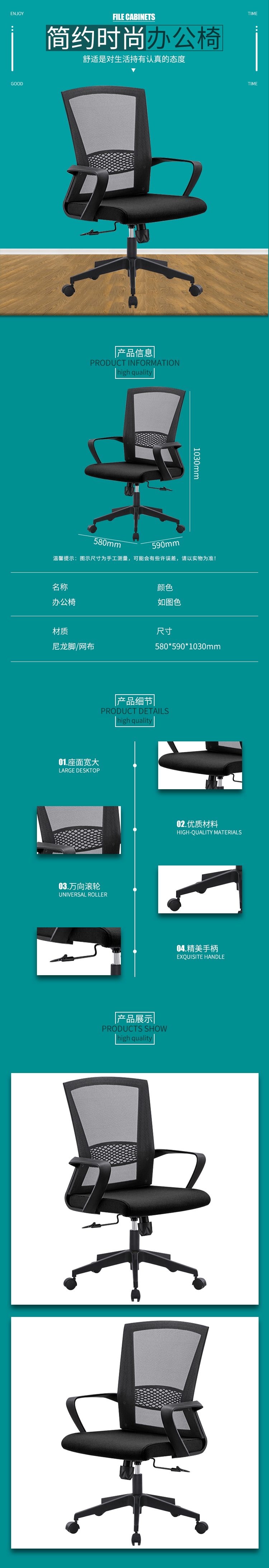 企诺 简约办公职员椅可升降椅子 BGY-16 黑色