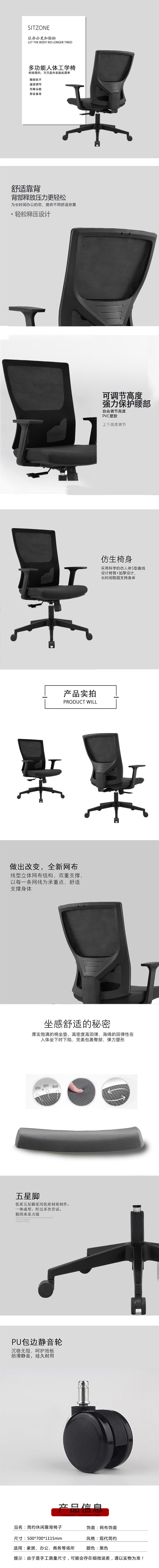 企诺 办公椅会议椅写字座椅电脑椅靠背椅 BGY-24 黑色