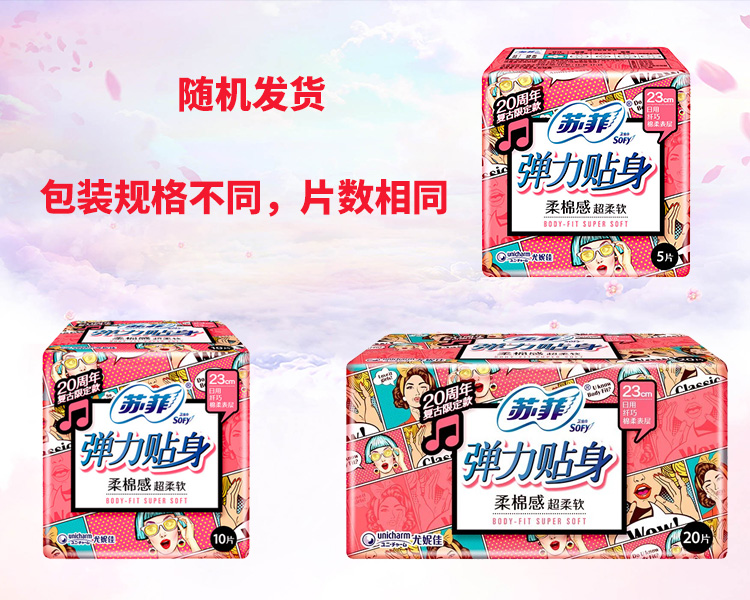 苏菲柔棉夜用420+日用230卫生巾8包套装36片 山茶花