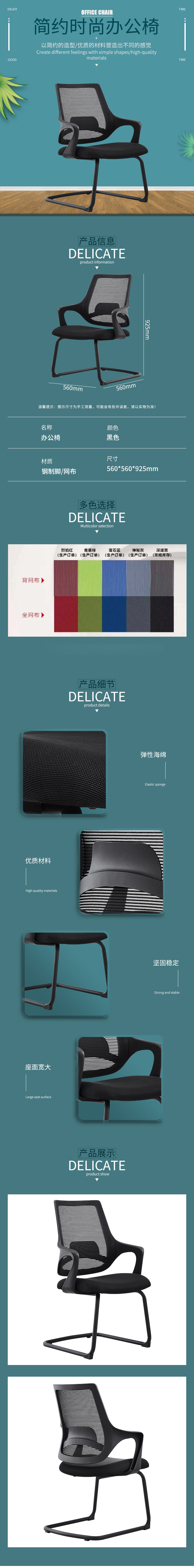 企诺 办公家具弓形脚办公椅会议椅职员椅 BGY-35 黑色
