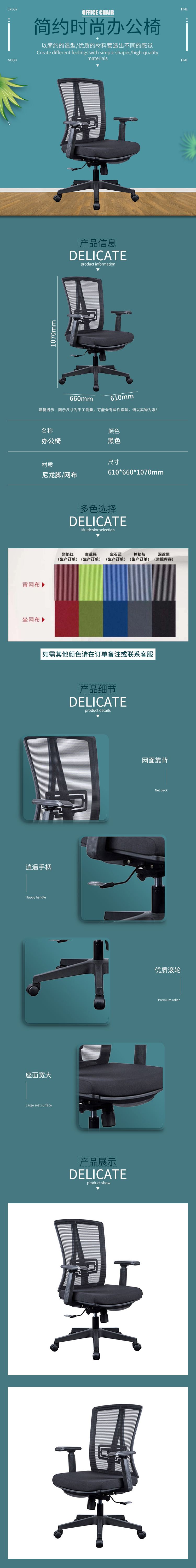 企诺 简约职员椅升降转椅网椅 BGY-44 黑色