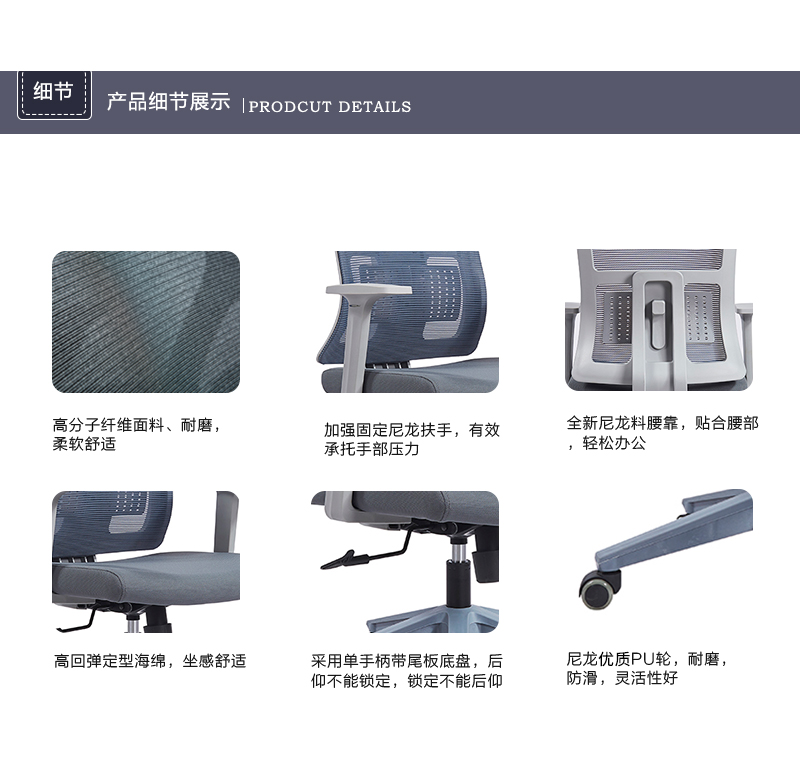企诺 办公椅靠背椅职员椅升降椅 BGY-49 灰蓝色