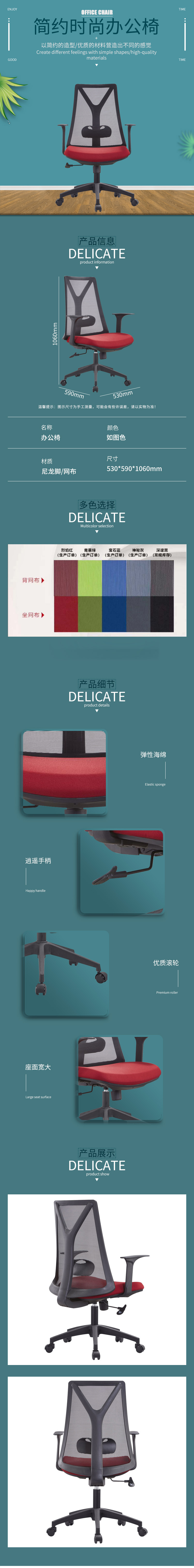 企诺 电脑椅办公椅靠背椅转椅升降椅 BGY-50 黑红色