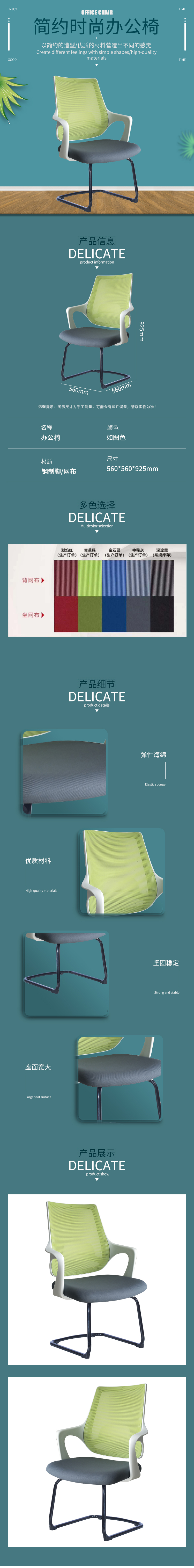 企诺 弓形脚办公椅会议椅职员椅 BGY-55 蓝色