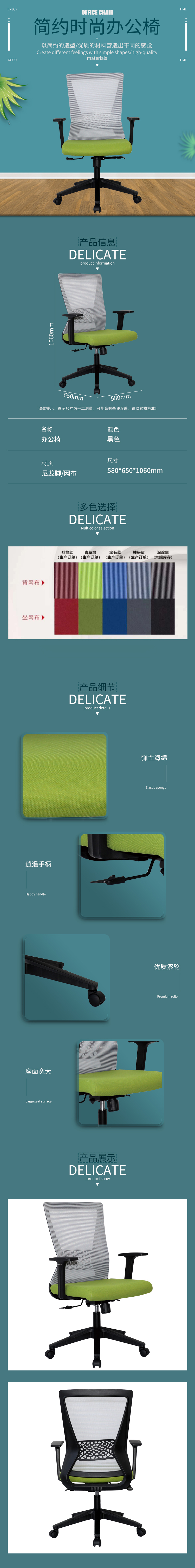 企诺 电脑椅办公椅升降椅转椅职员办公椅 BGY-58 灰绿色