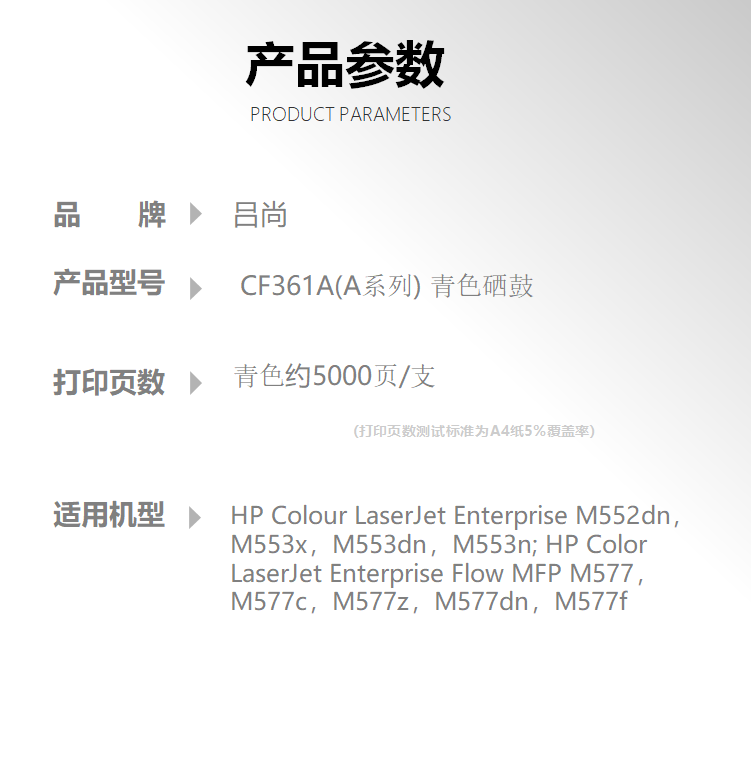 吕尚 CF361A(A系列) 5000页 适用HP M553dn M577dn M552DN 硒鼓 (计价单位:只) 青色