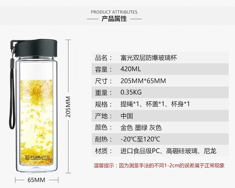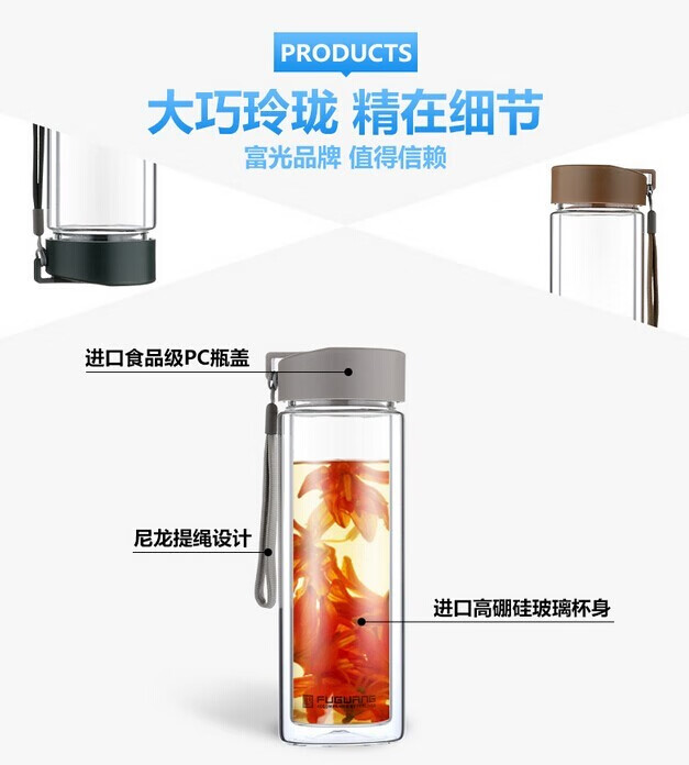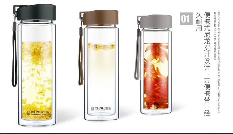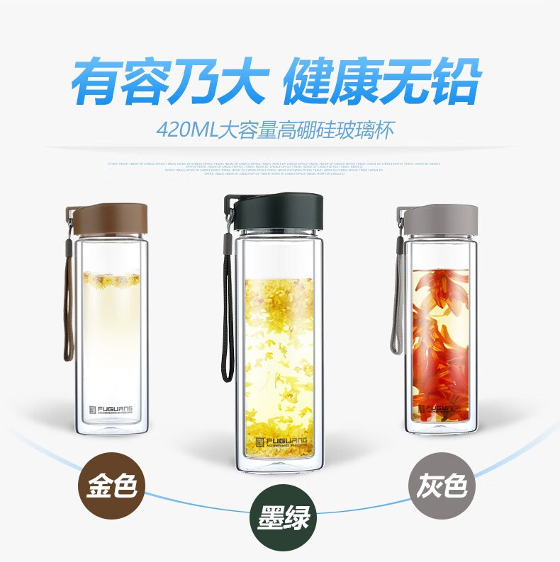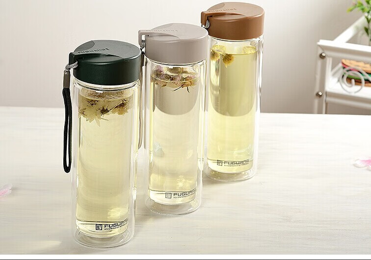 富光双层玻璃杯G1311-420 墨绿