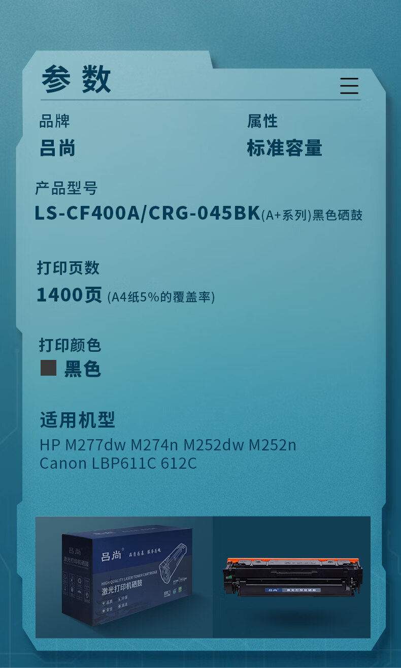 吕尚 LS-CF400A/CRG-045BK(A+系列)黑色硒鼓 黑色