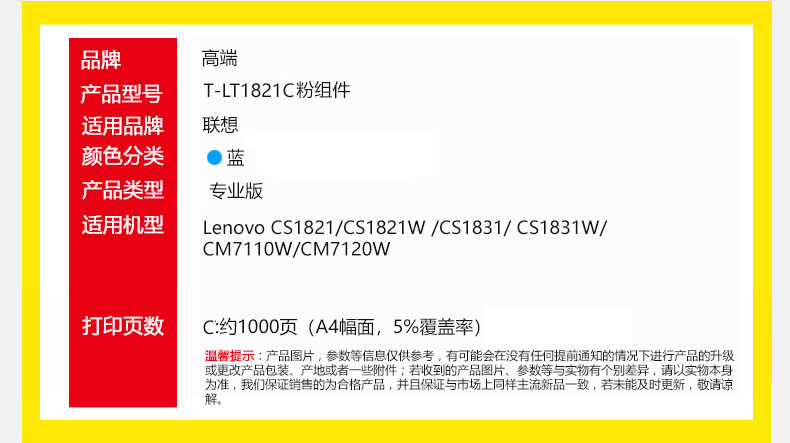 高端TECH-A T-LT1821C粉组件专业版蓝色适用联想CS1821/CS1821W彩色CS1831打印机CS1831W碳粉盒CM7110W墨粉盒7120 蓝色