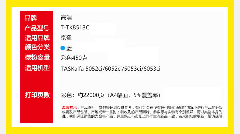 高端TECH-A T-TK8518C粉盒专业版 蓝色 适用TASKalfa5052ci/6052ci/5053ci/6053ci 蓝色