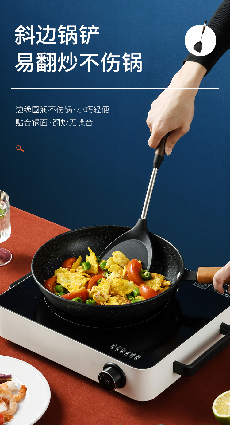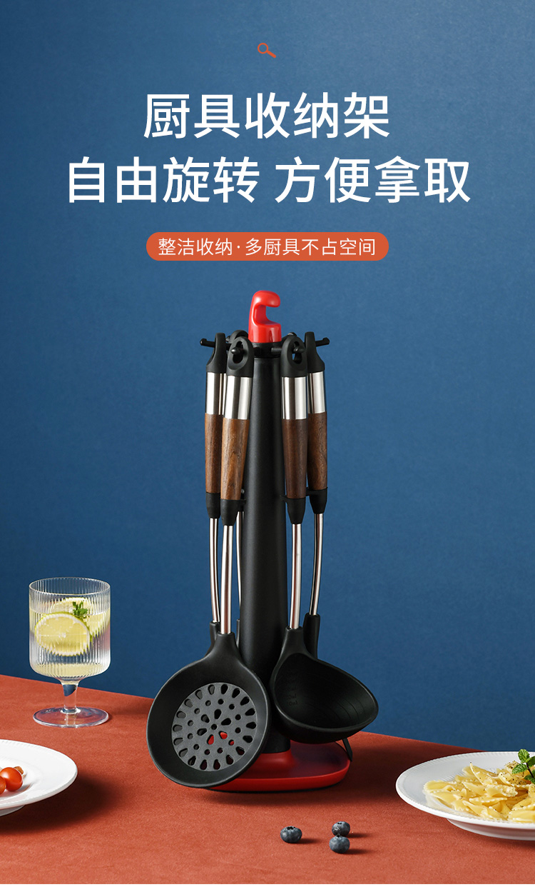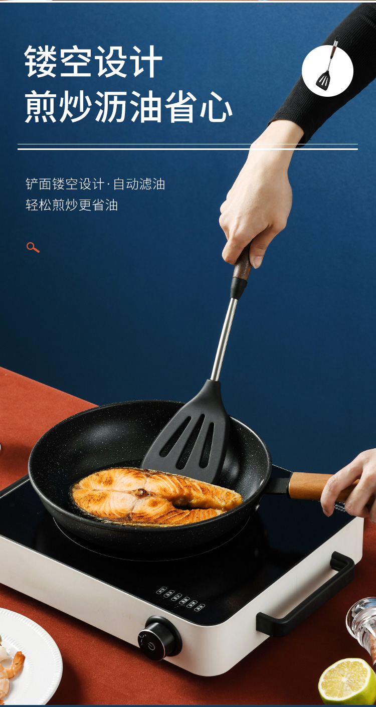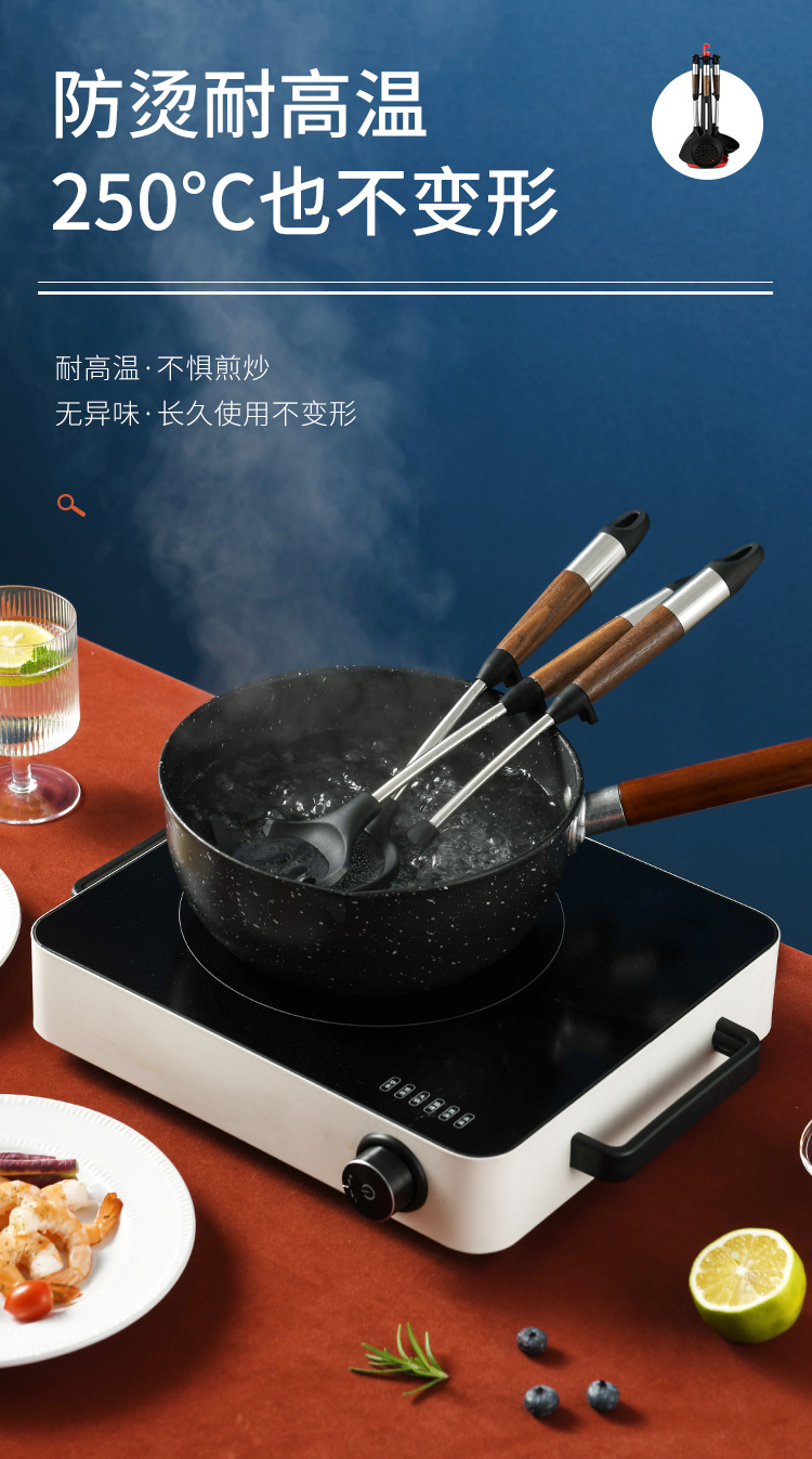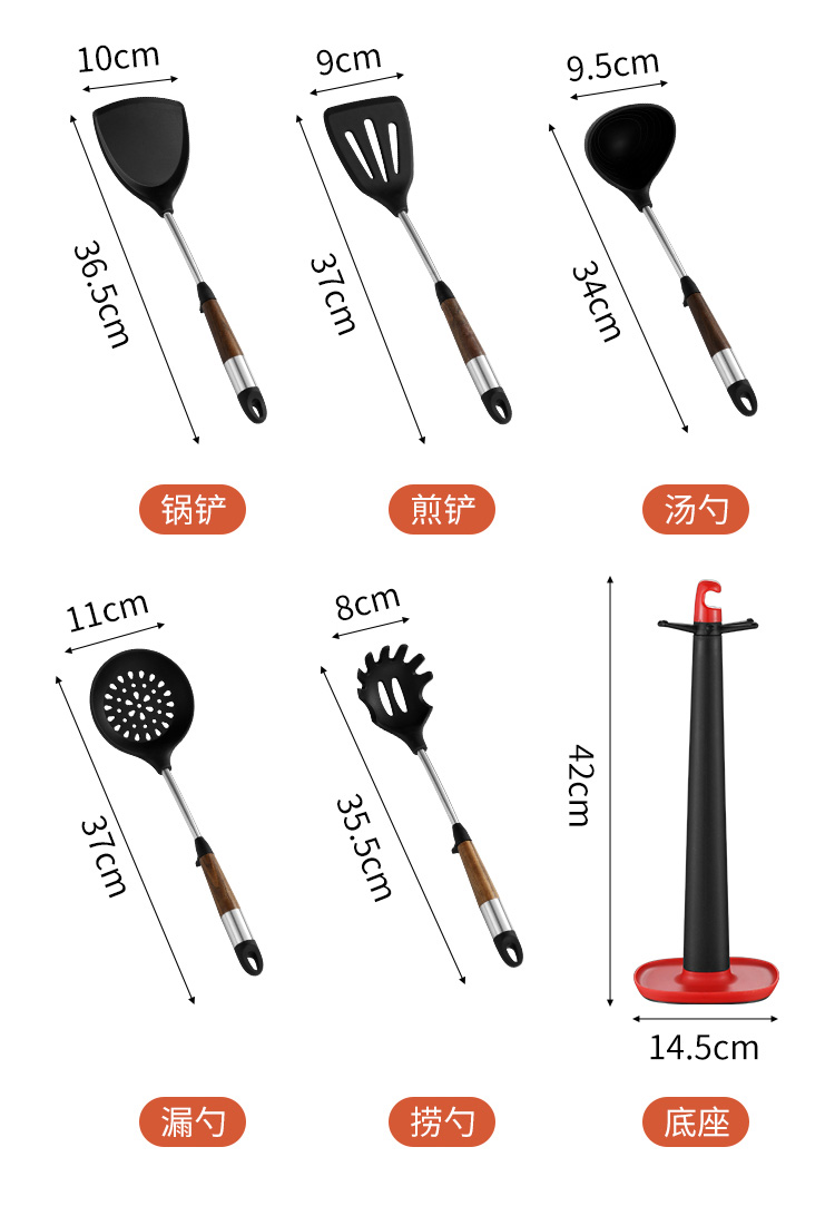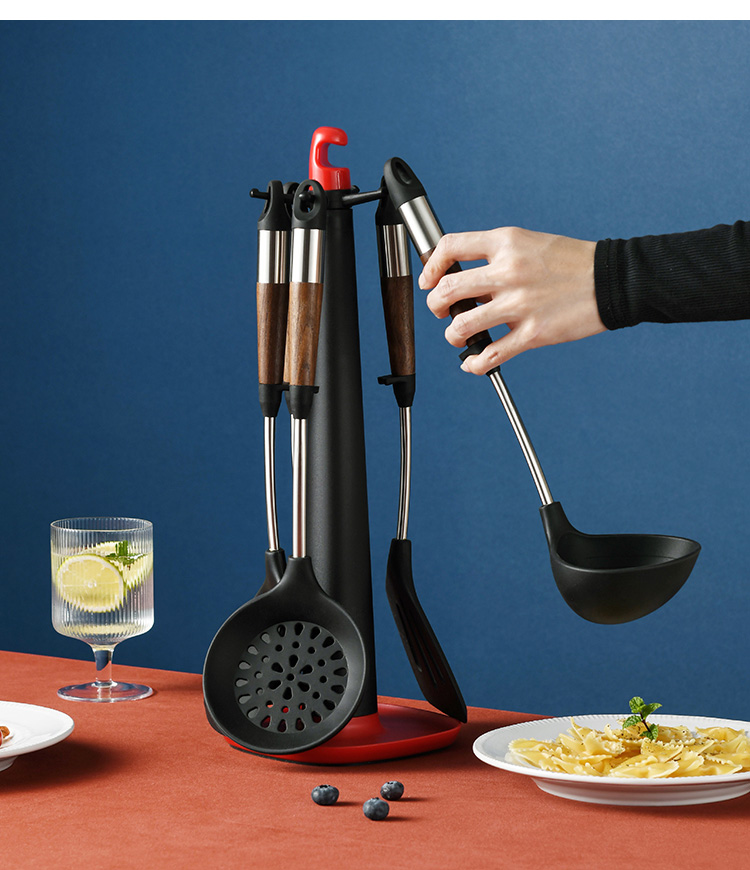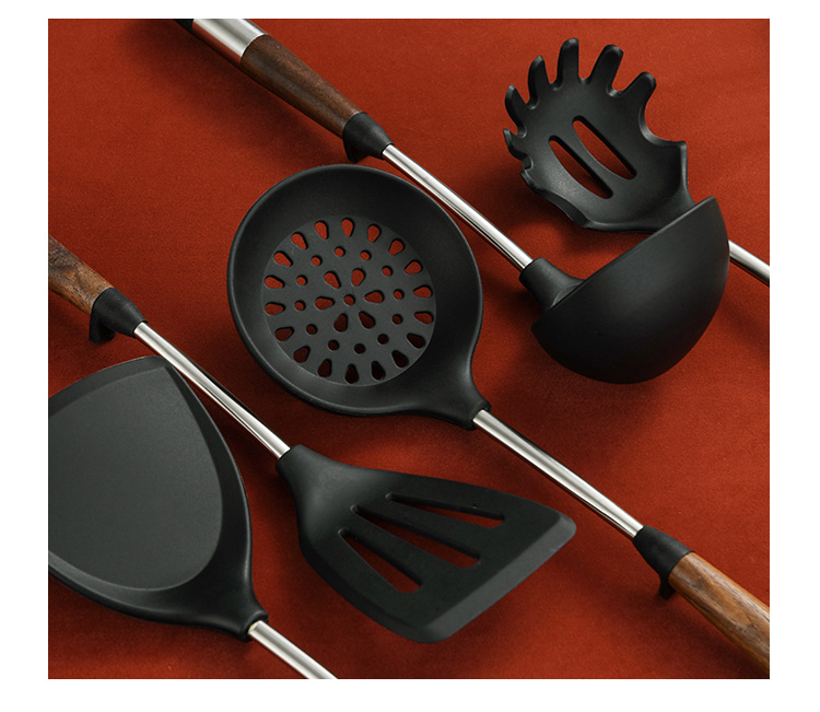 拜格 不锈钢木纹手柄硅胶厨具 6件套【BC3518】单位:套 曜石黑