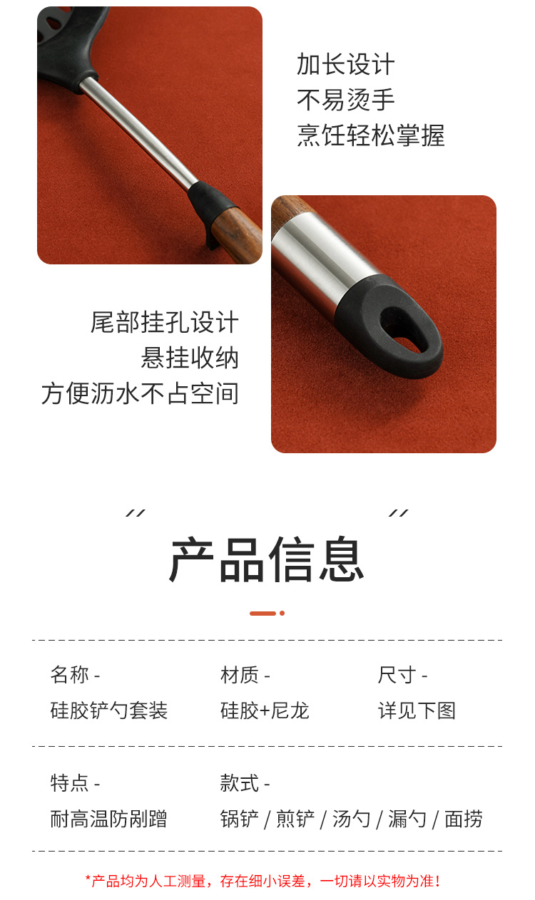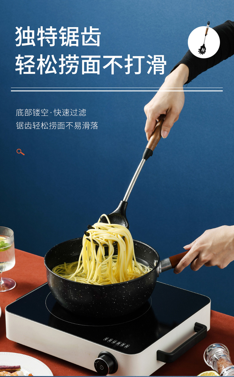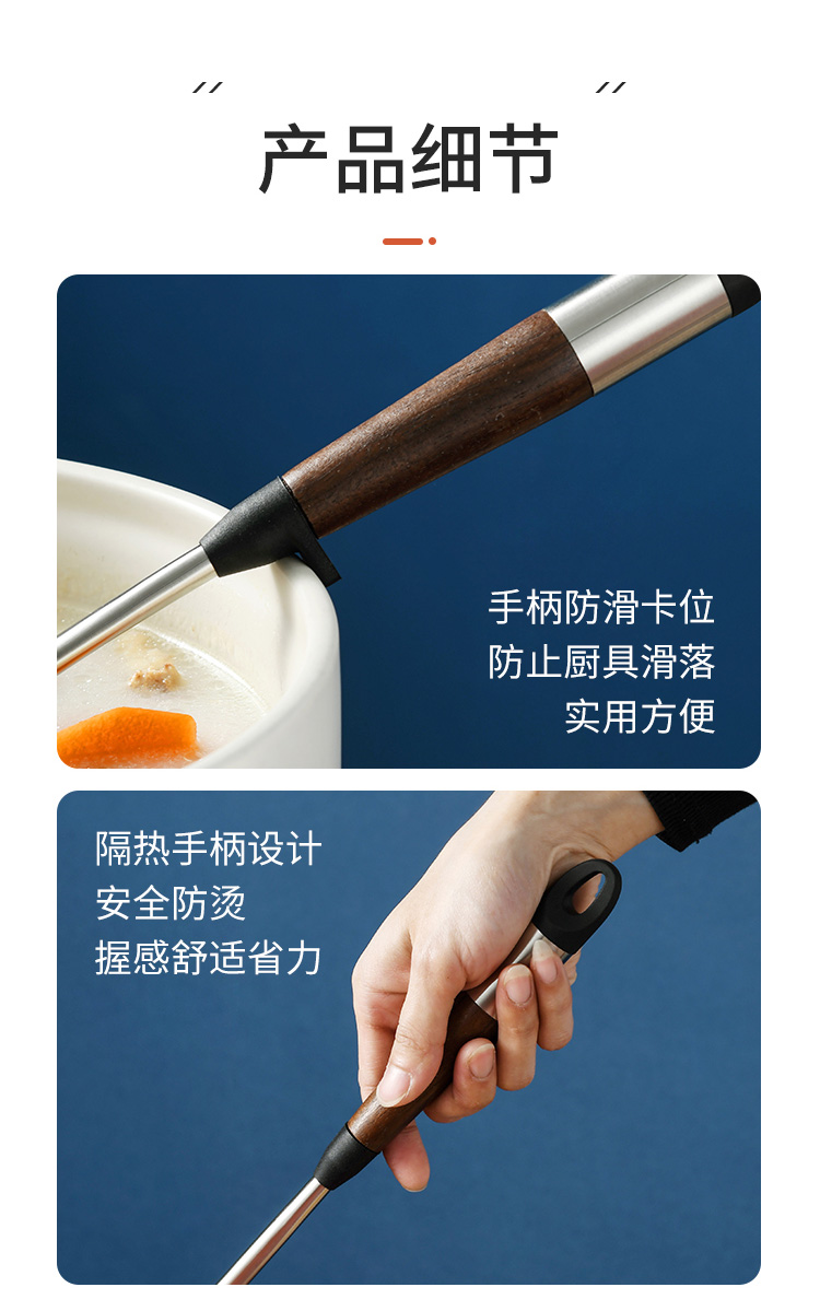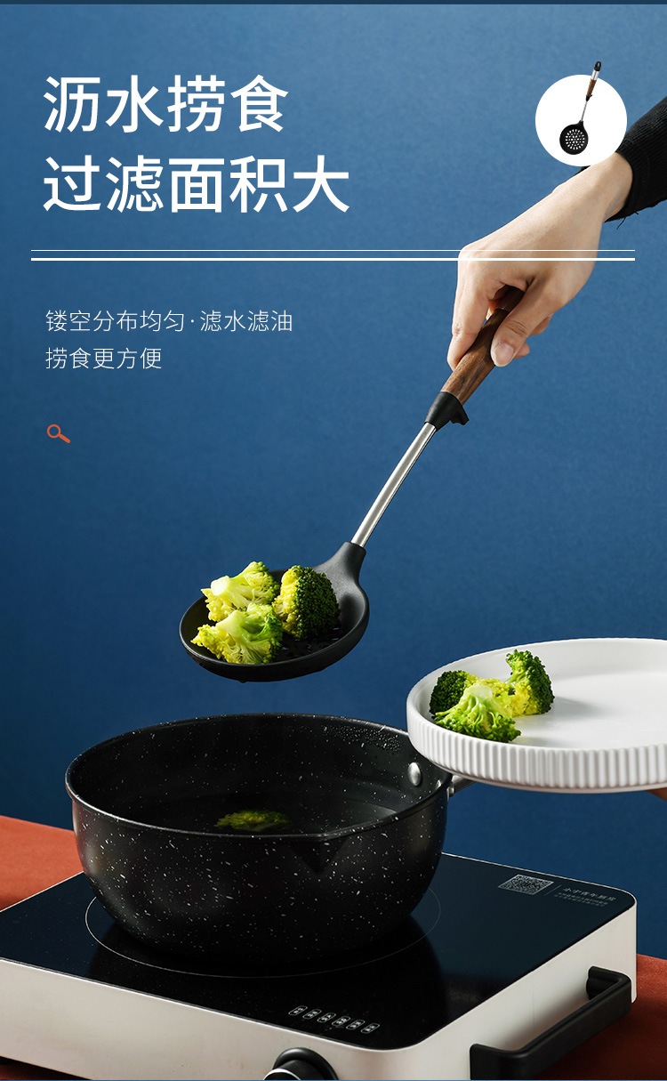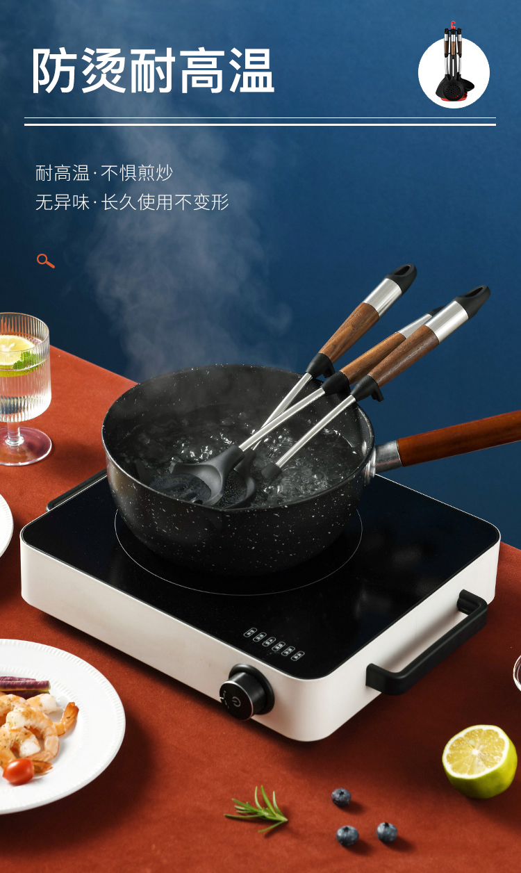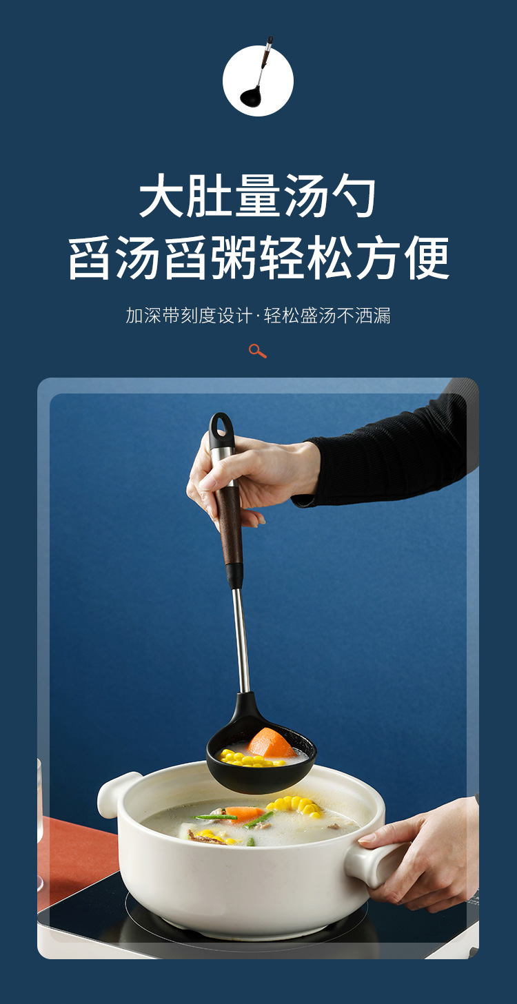拜格 不锈钢木纹手柄硅胶厨具 6件套【BC3518】单位:套 曜石黑