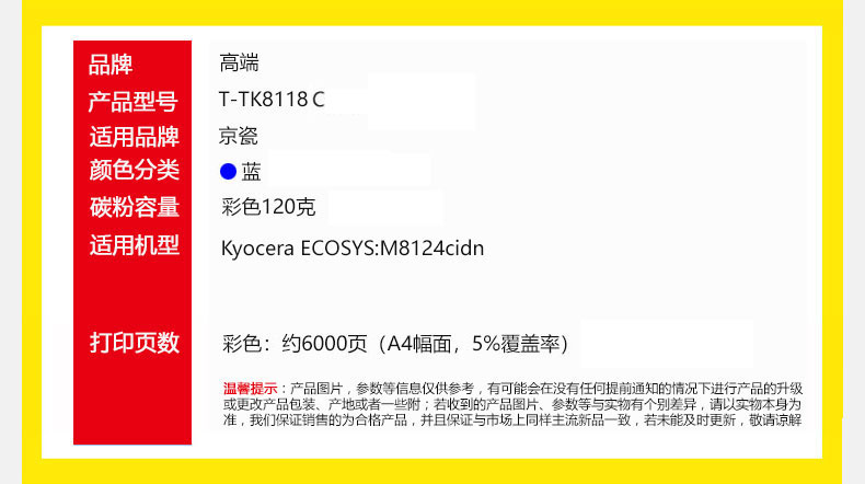 高端TECH-A T-TK8118C粉盒专业版 蓝色 适用Kyocera ECOSYS:M8124cidn 蓝色