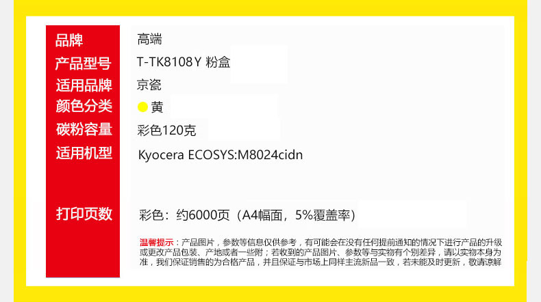 高端TECH-A T-TK8108Y粉盒专业版 黄色 适用京瓷Kyocera ECOSYS:M8024cidn复印机墨粉盒 彩色碳粉盒 黄色