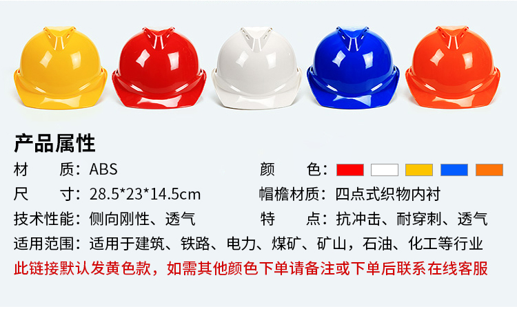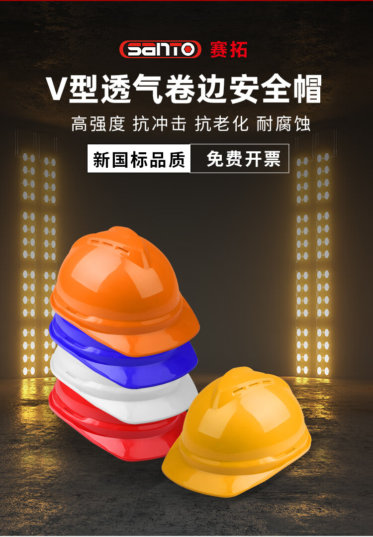 赛拓(SANTO)工地安全帽 新国标ABS 透气V型卷边安全帽 工地施工建筑防砸安全帽 五色可选可印字 1985 黄色