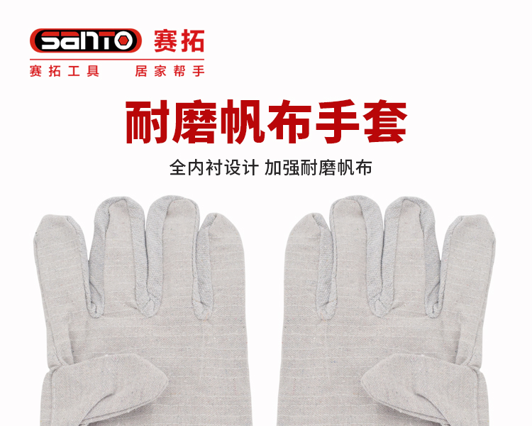 赛拓(SANTO)帆布手套双层耐磨防滑劳保手套施工作业防护手套 耐磨耐油手套 24线白甲帆布常规款 10双装 2065 白色