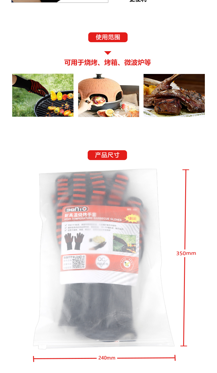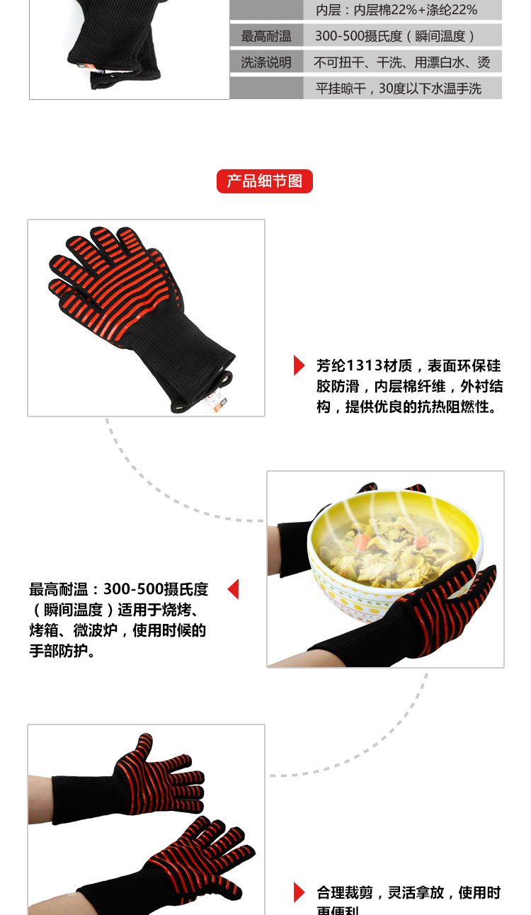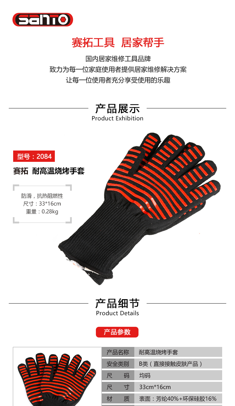 赛拓(SANTO)耐高温隔热手套 高温防烫手套微波炉烤箱烧烤手套 工业隔热手套 耐温300-500摄氏度(瞬间温度) 2084 红黑色