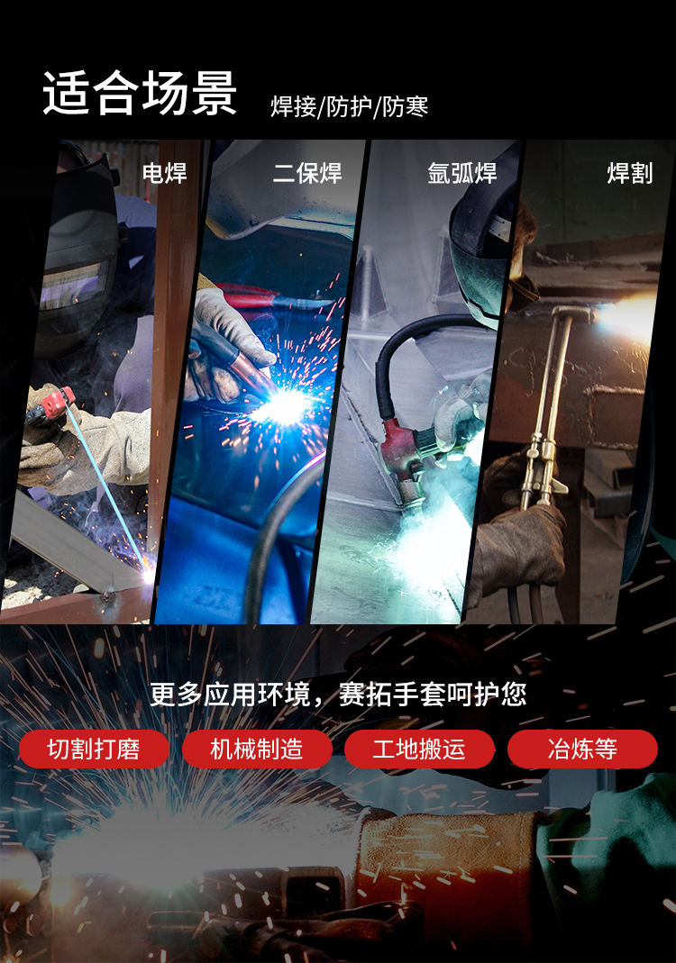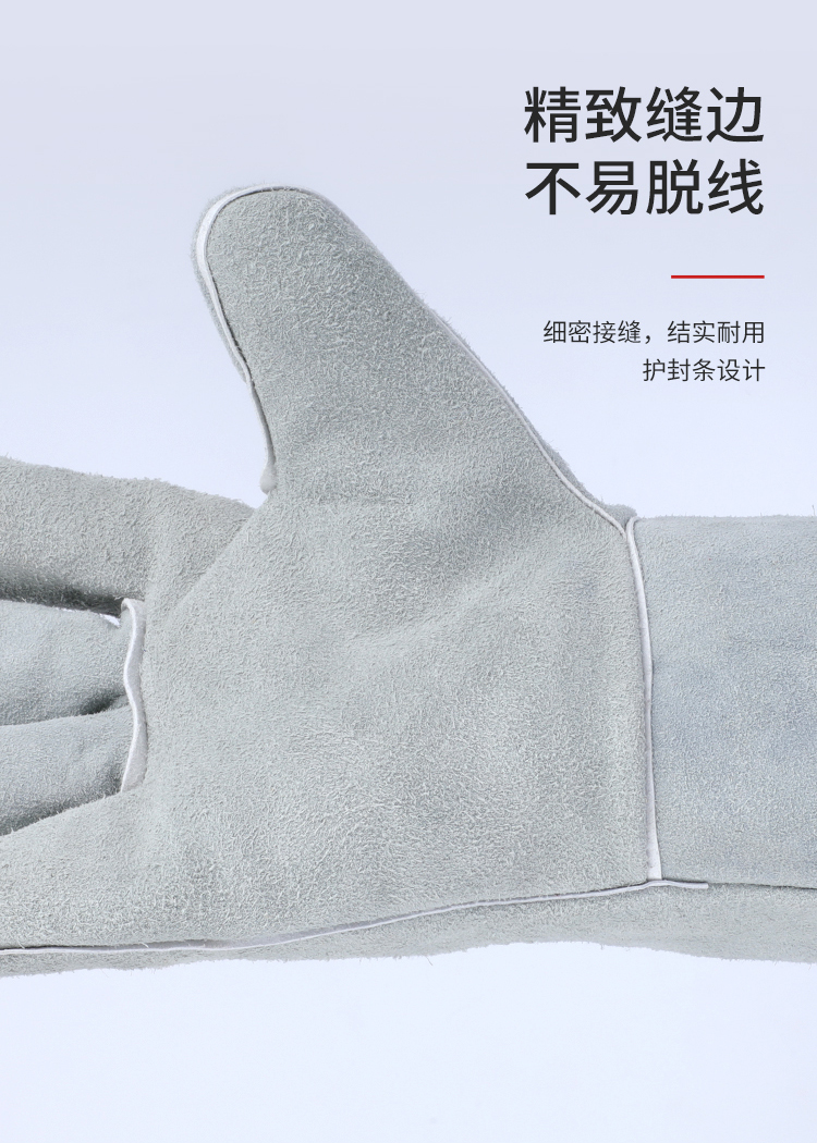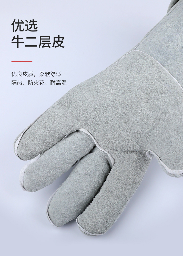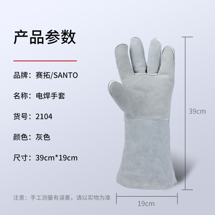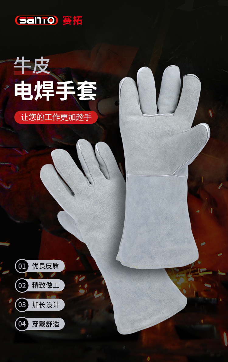 赛拓(SANTO)电焊防护手套 焊工手套 牛皮加强掌面长款加厚耐磨隔热防烫手套焊接手套 劳保手套 白色 2104 白色
