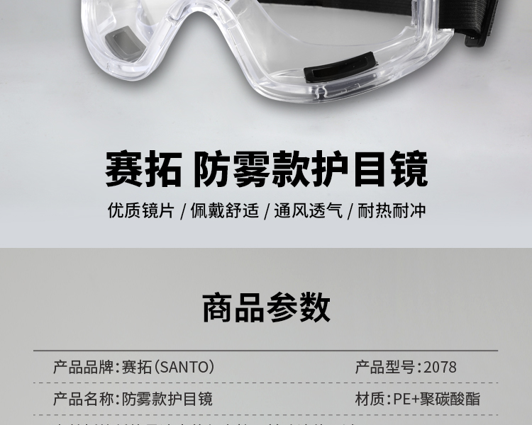 赛拓(SANTO)2078 护目镜防风防尘防沙防护眼镜防冲击眼罩防雾舒适 白色