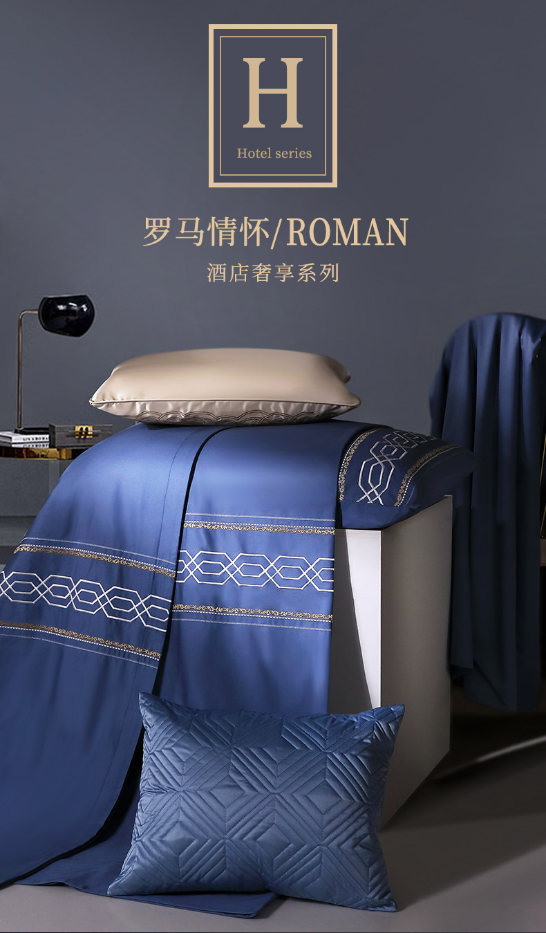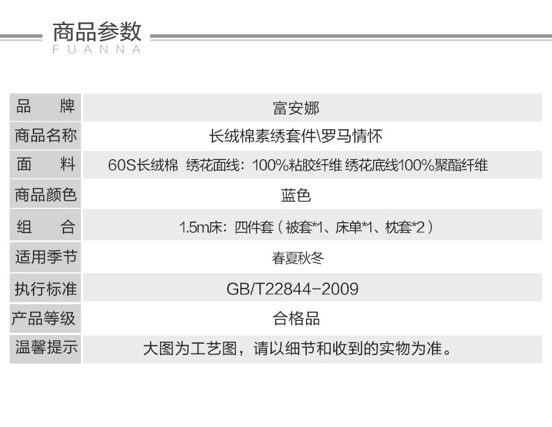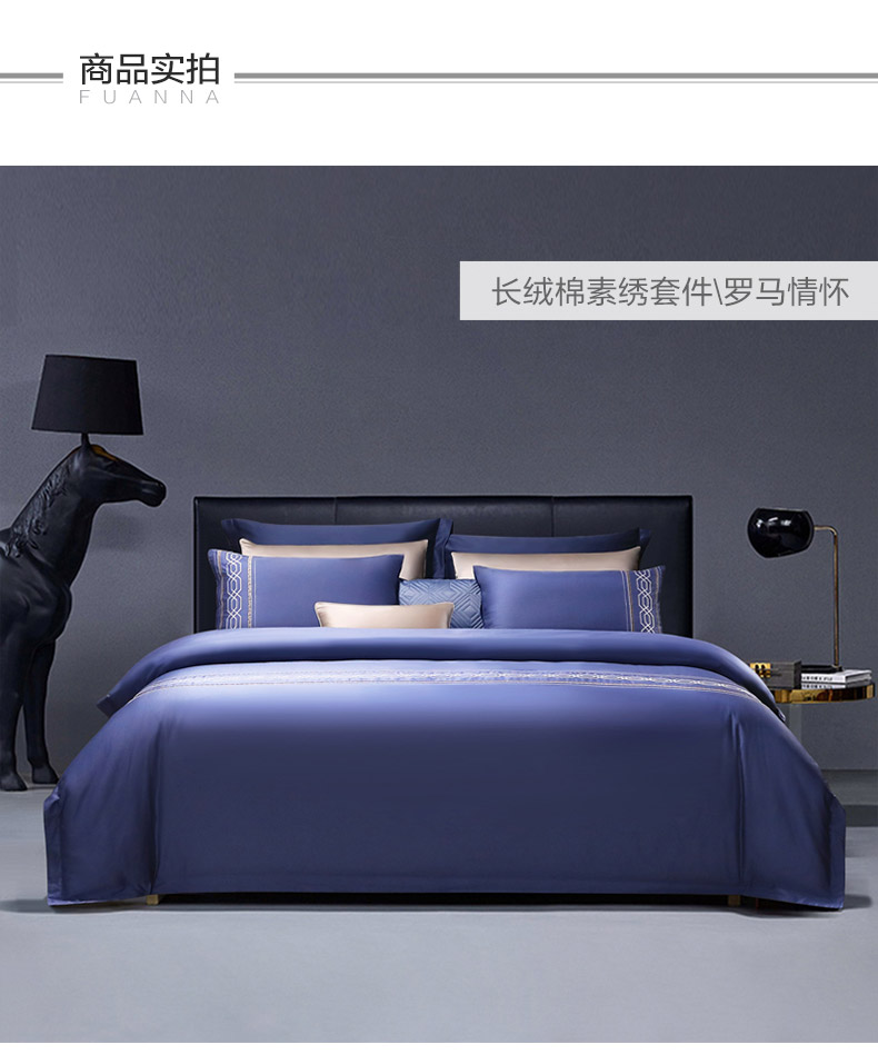 富安娜长绒棉素绣套件罗马情怀203*229cm单位 套 蓝色