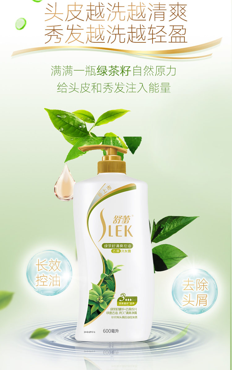 舒蕾绿茶籽清爽控油去屑洗发露600ml/瓶 绿色
