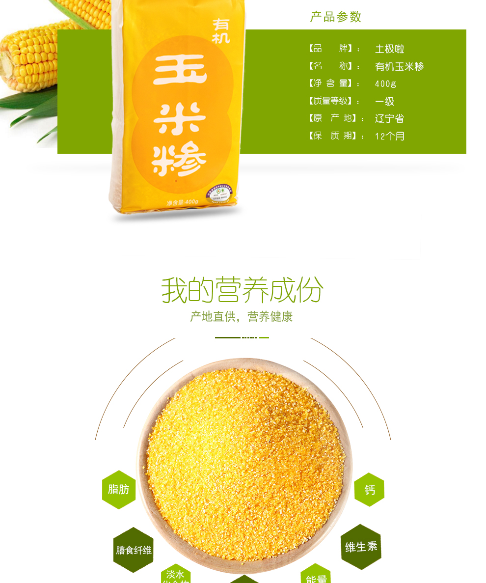 土极啦有机玉米糁东北碴子粥五谷杂粮400g*4袋 原色