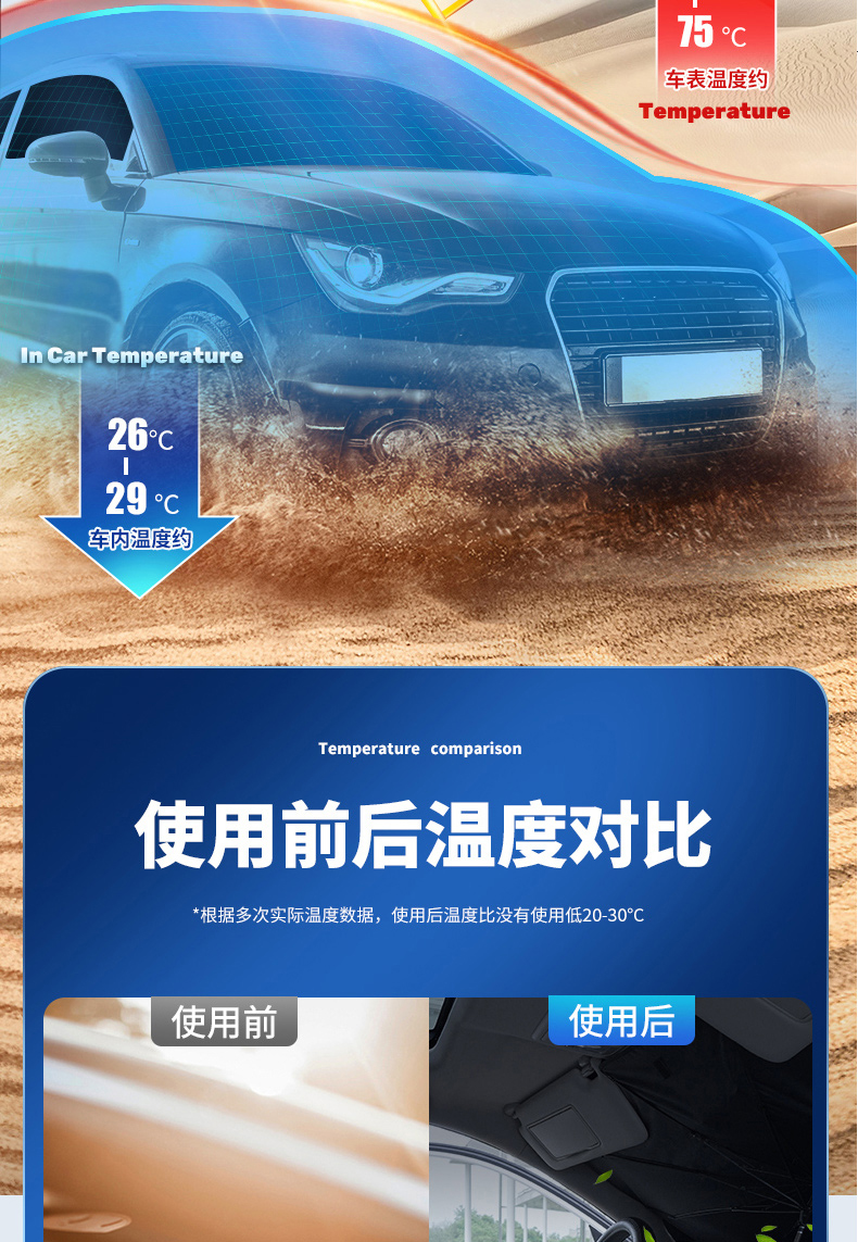 佳百丽GaBree 汽车遮阳挡遮阳伞伞柄可弯折前挡风玻璃防晒隔热遮阳板窗帘车载通用 升级款 大号79*140cm 银色