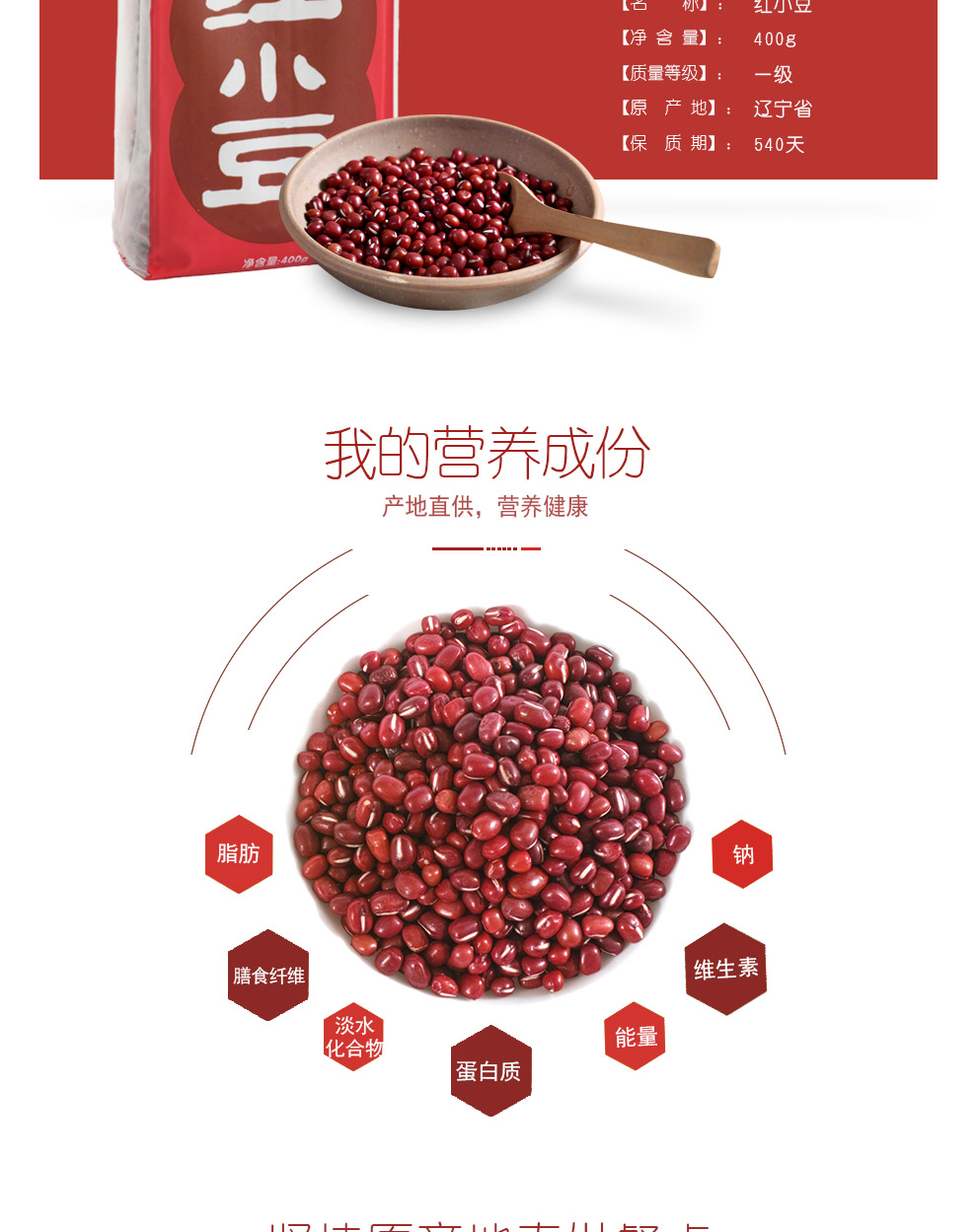土极啦有机红小豆400g/袋 东北特产豆香皮薄 4袋 原色