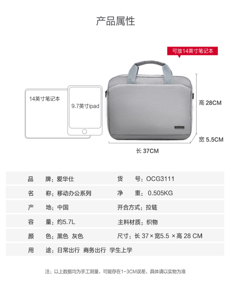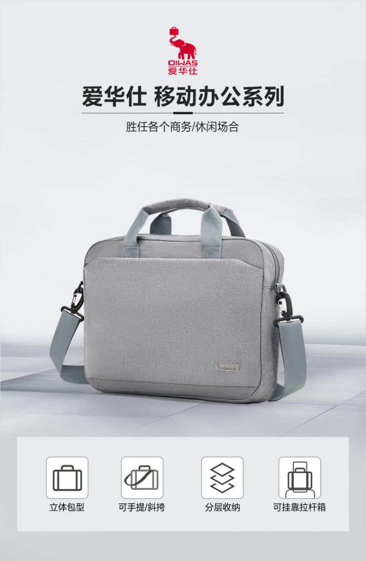 爱华仕(OIWAS) OCG3111 37*5.5*28cm 14英寸手提公文包 灰色(单位:个)