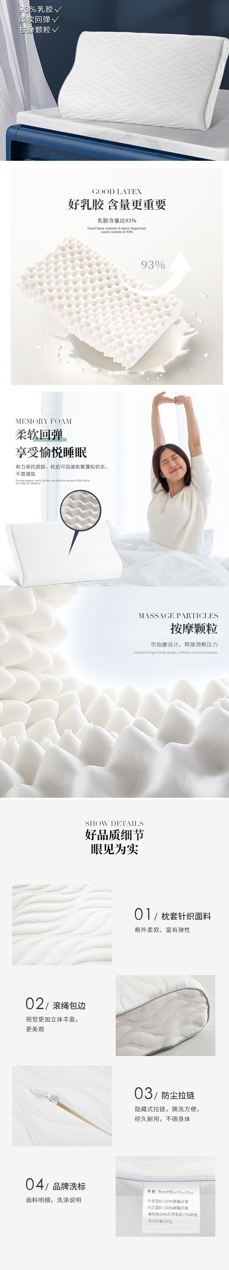 水星家纺 泰国乳胶枕进口天然乳胶波浪乳胶枕头橡胶透气枕芯成人颈椎枕 百思 58×35×8/10cm 白色 白色