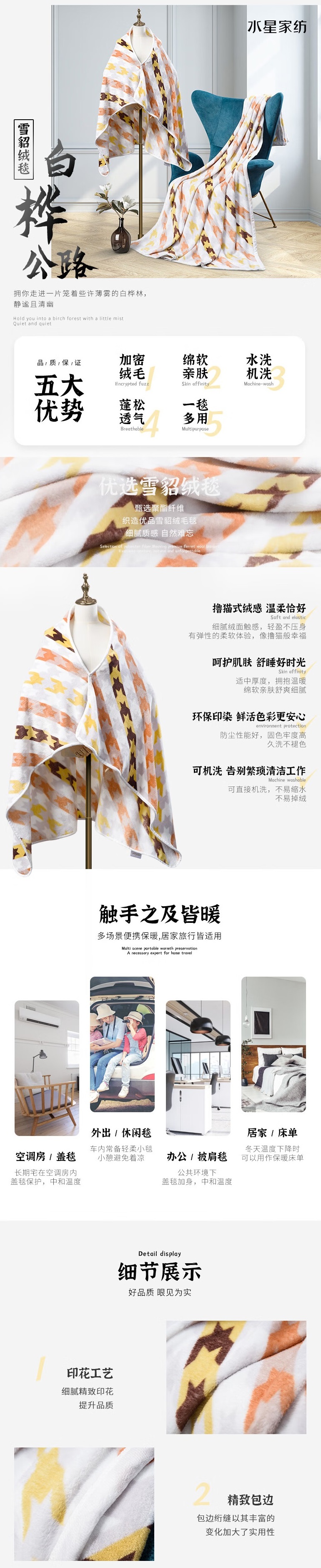 水星家纺 DH雪貂绒毯-白桦公路 100cm×150cm/条 花色 花色