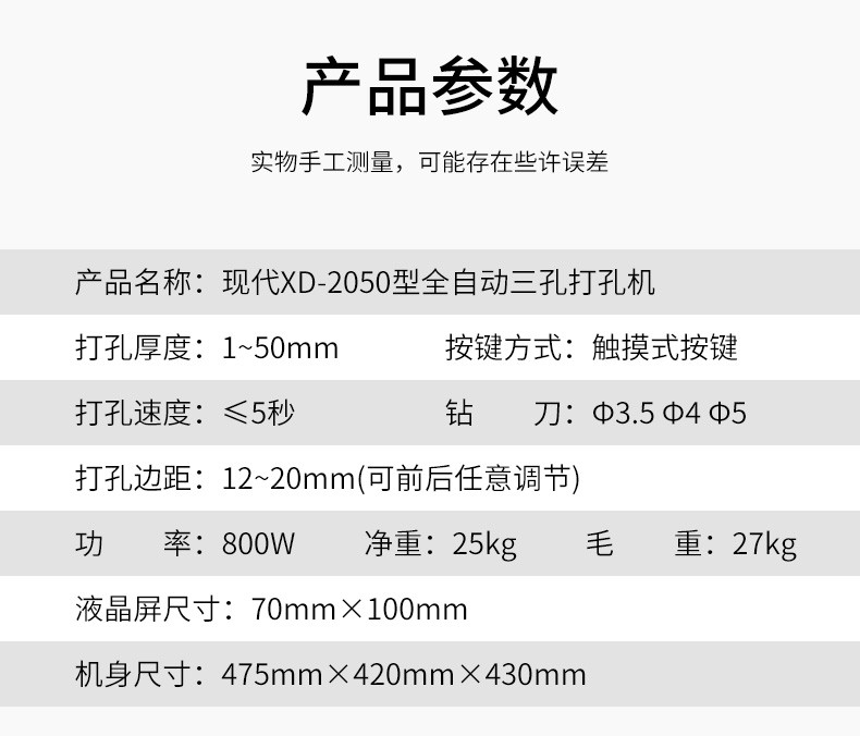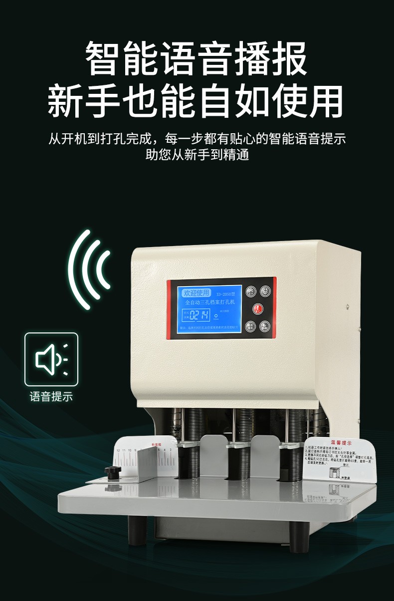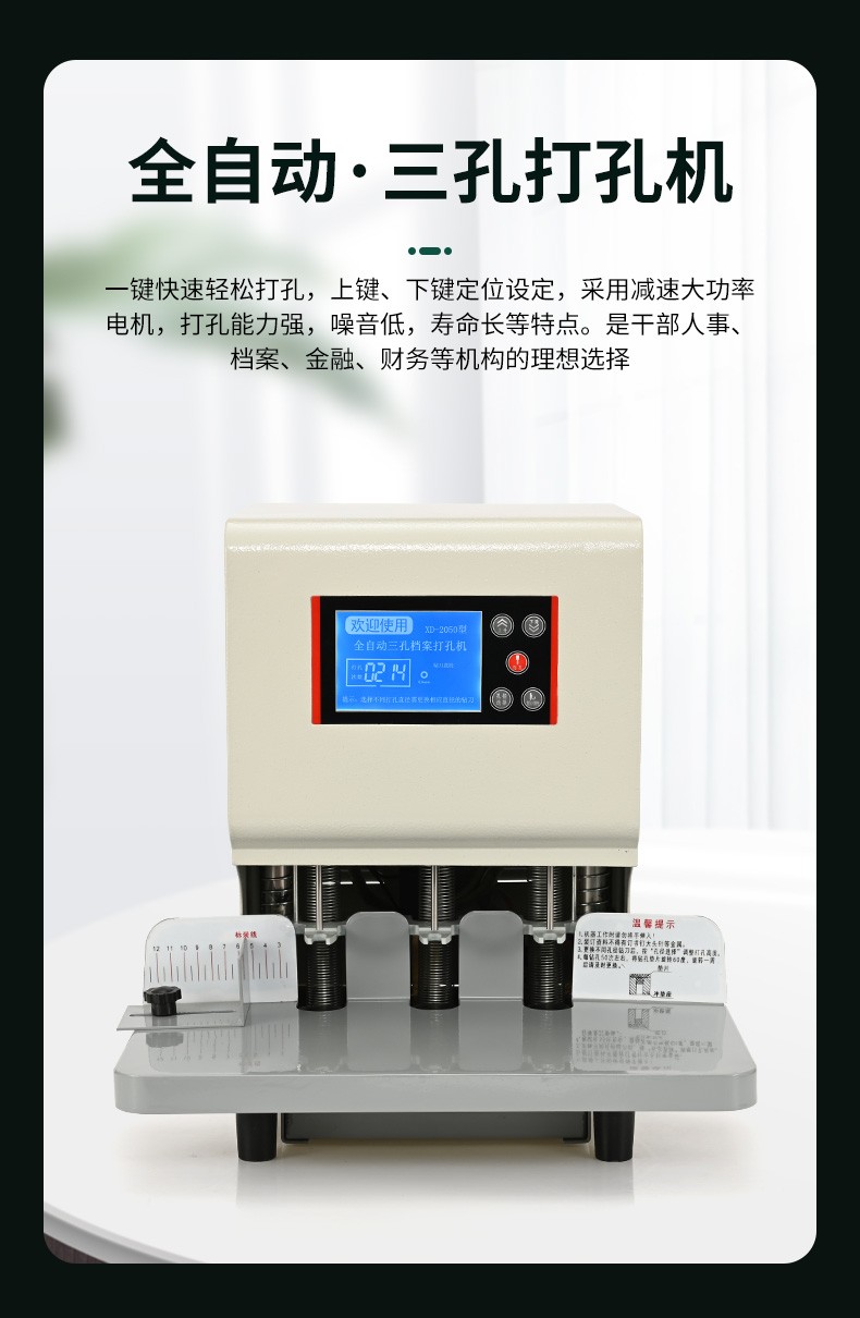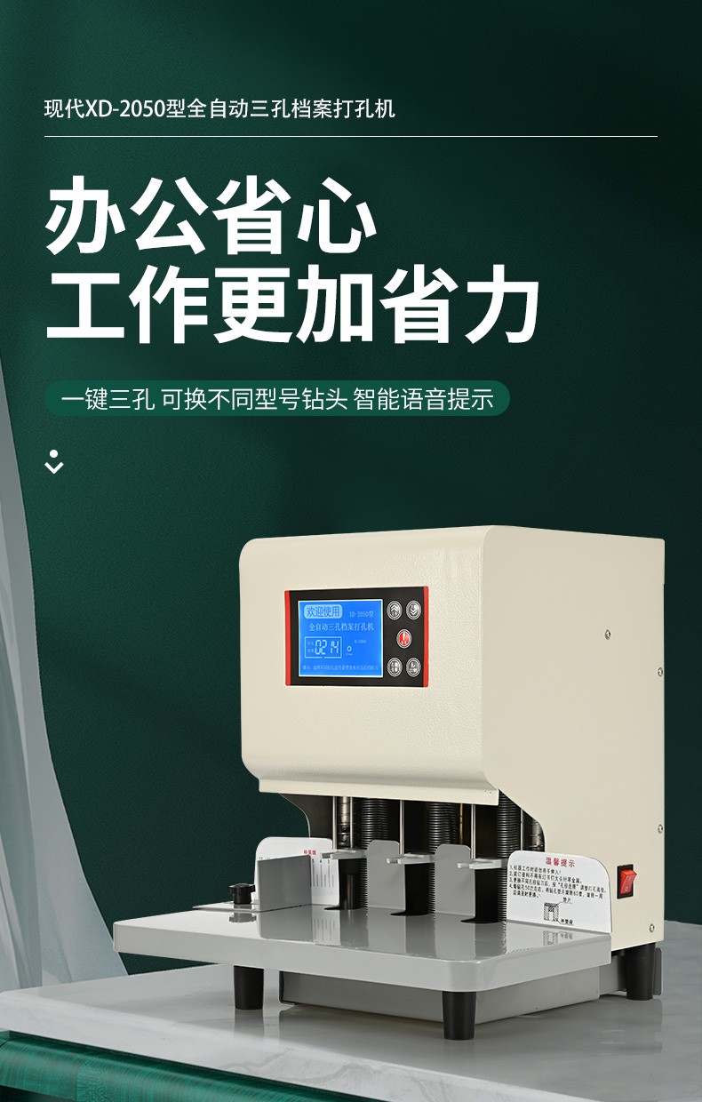 现代 XD-2050 商务办公全自动三孔档案打孔机/智能语音/电动三孔打孔机 白色