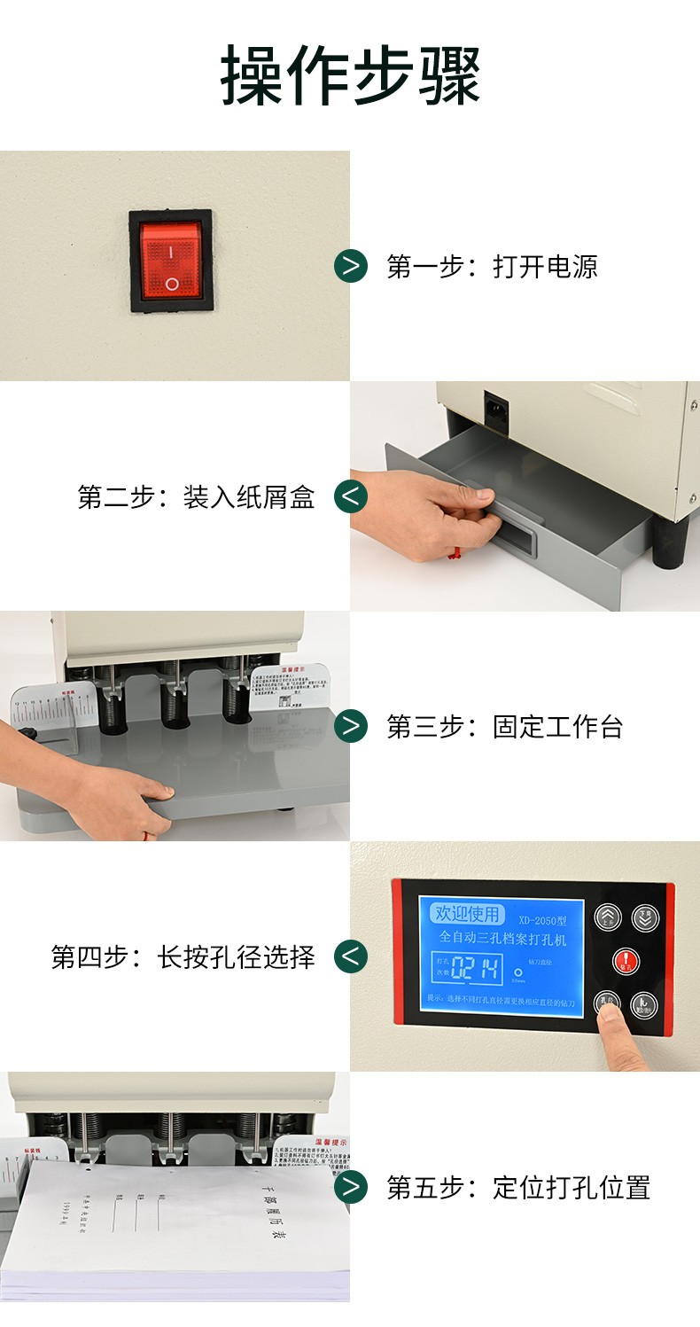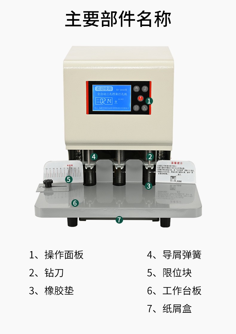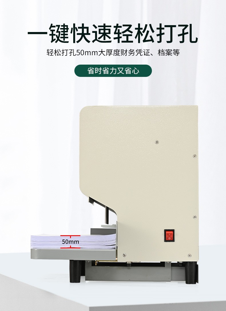 现代 XD-2050 商务办公全自动三孔档案打孔机/智能语音/电动三孔打孔机 白色