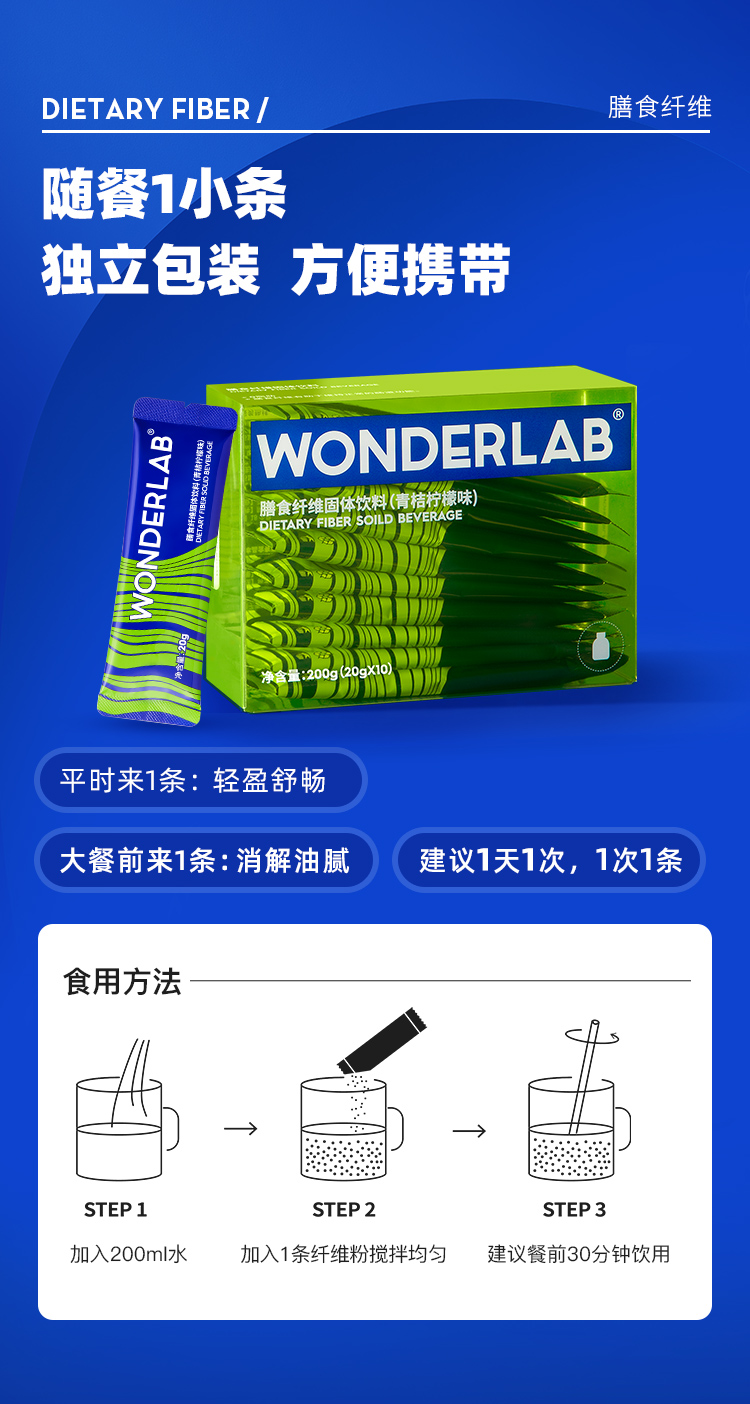 WonderLab膳食纤维固体饮料 (10条装) (青桔柠檬味) 宝石蓝