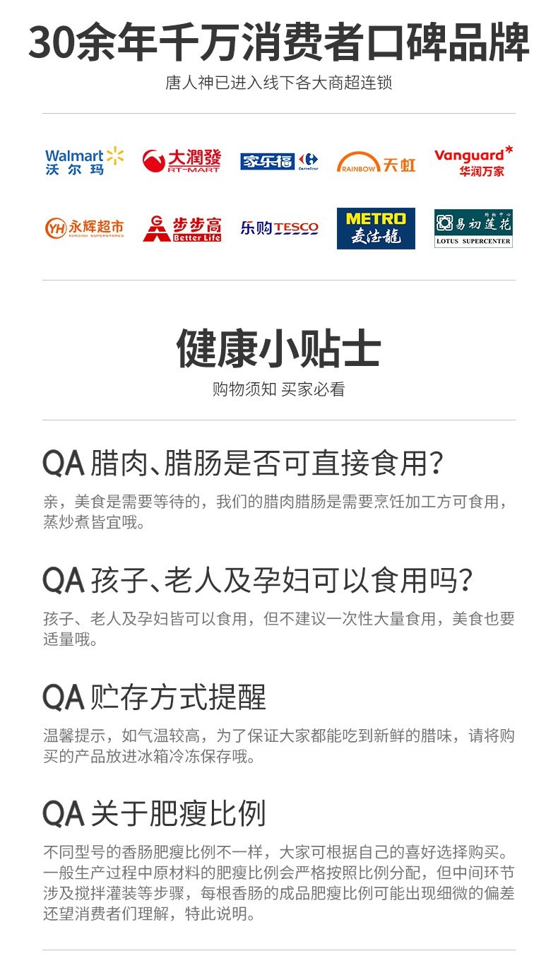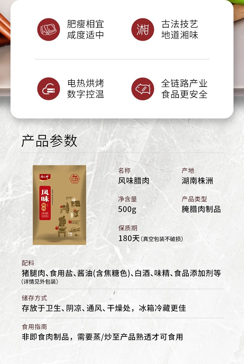 唐人神湘式五花腊肉500g(偏远地区不发货) 金黄