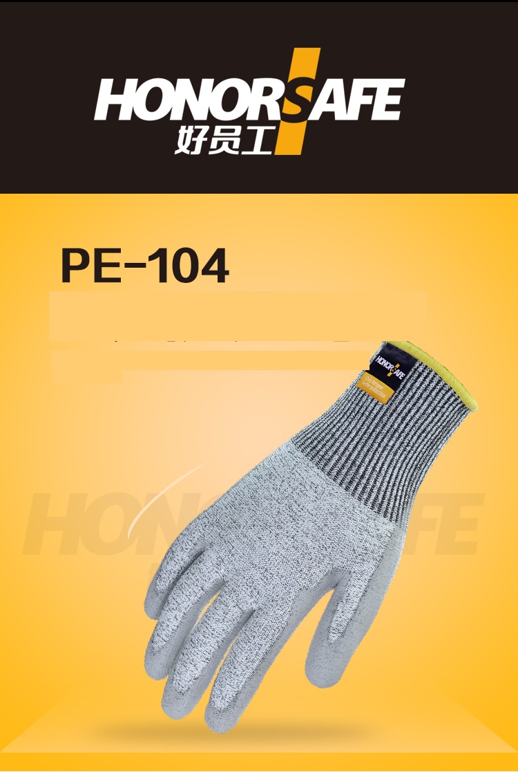 好员工 PE-104 HPPE/PU涂层防切割劳保手套 8号 5副 灰色