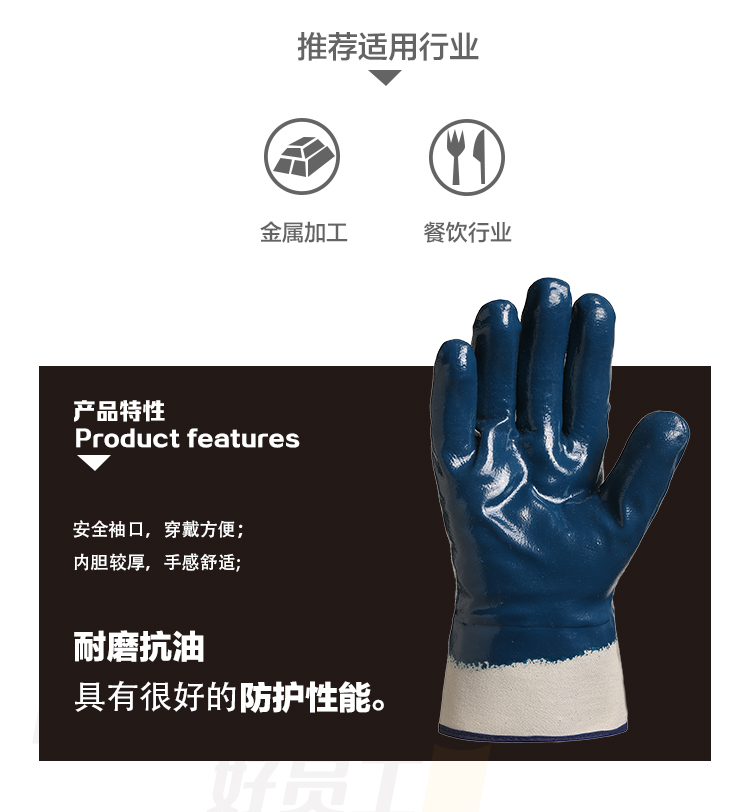 好员工 DJ900 丁腈涂层耐油耐酸碱劳保手套 10副 深蓝色