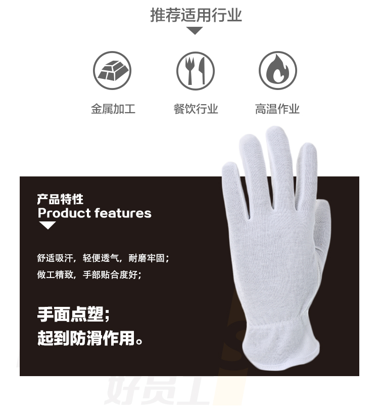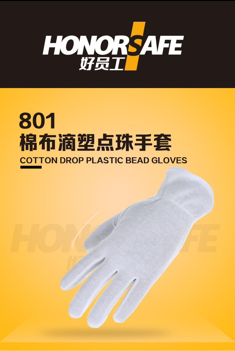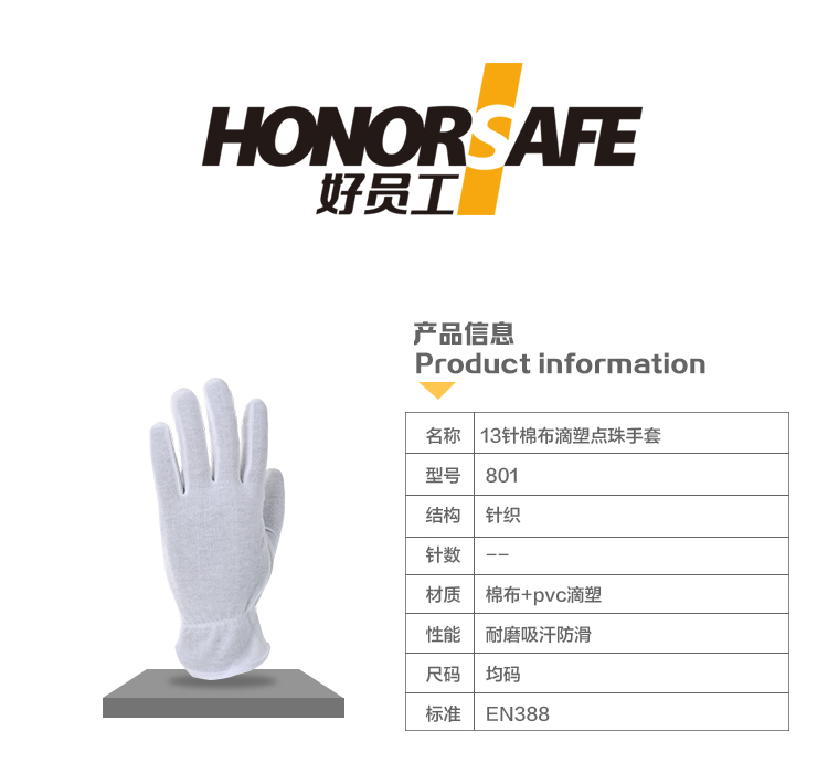 好员工 801 13针棉布滴塑点珠劳保手套 12副/打 灰色
