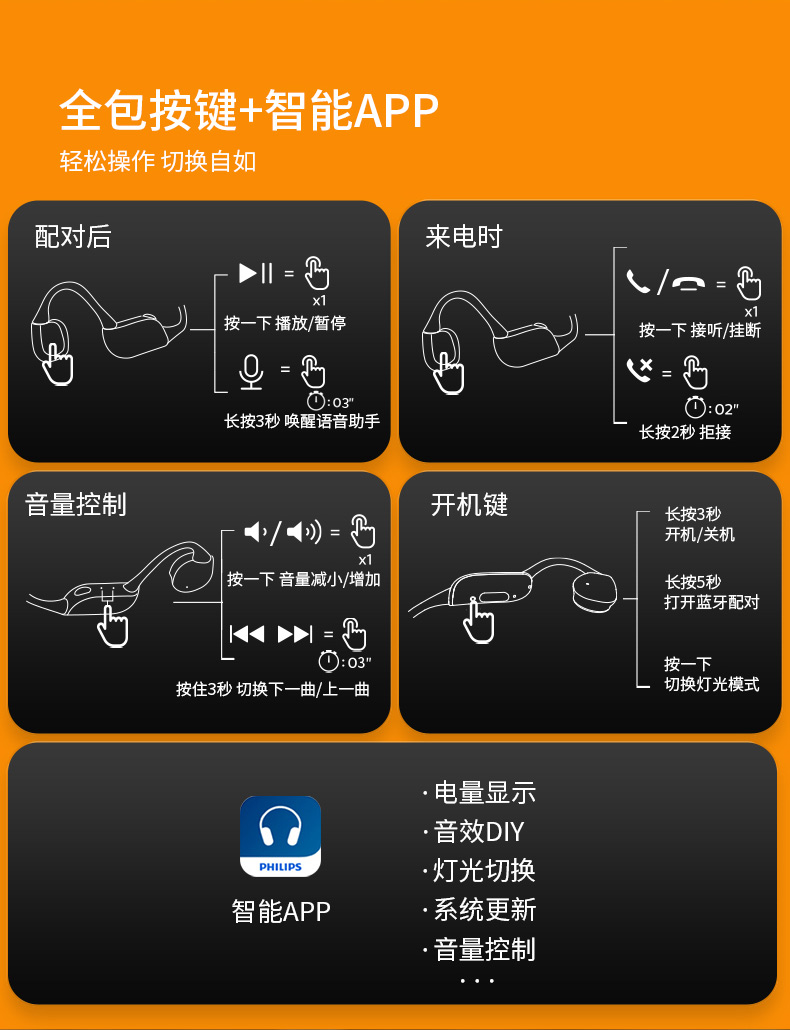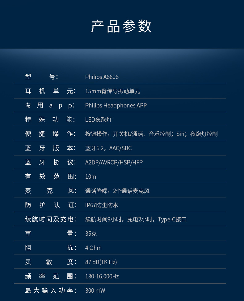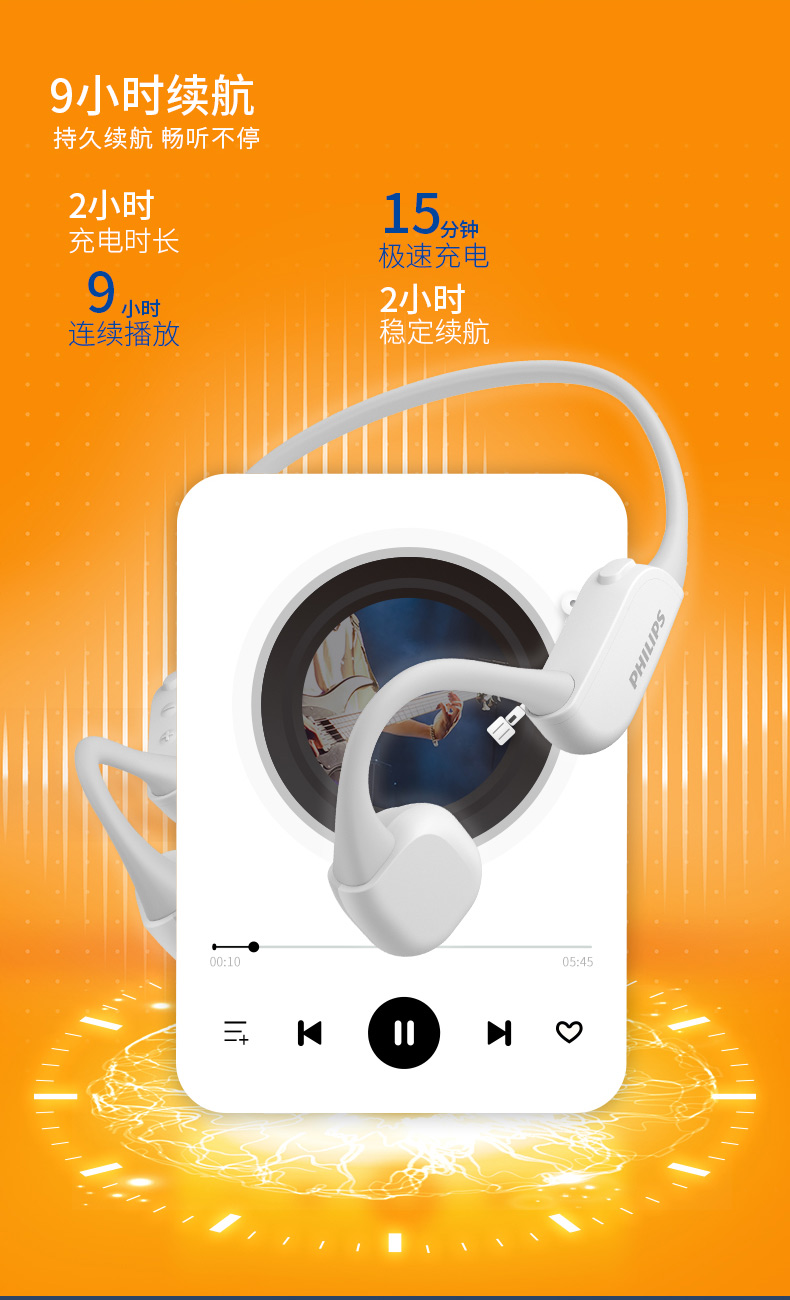 飞利浦(骨传导耳机 TAN6606 黑色 黑色