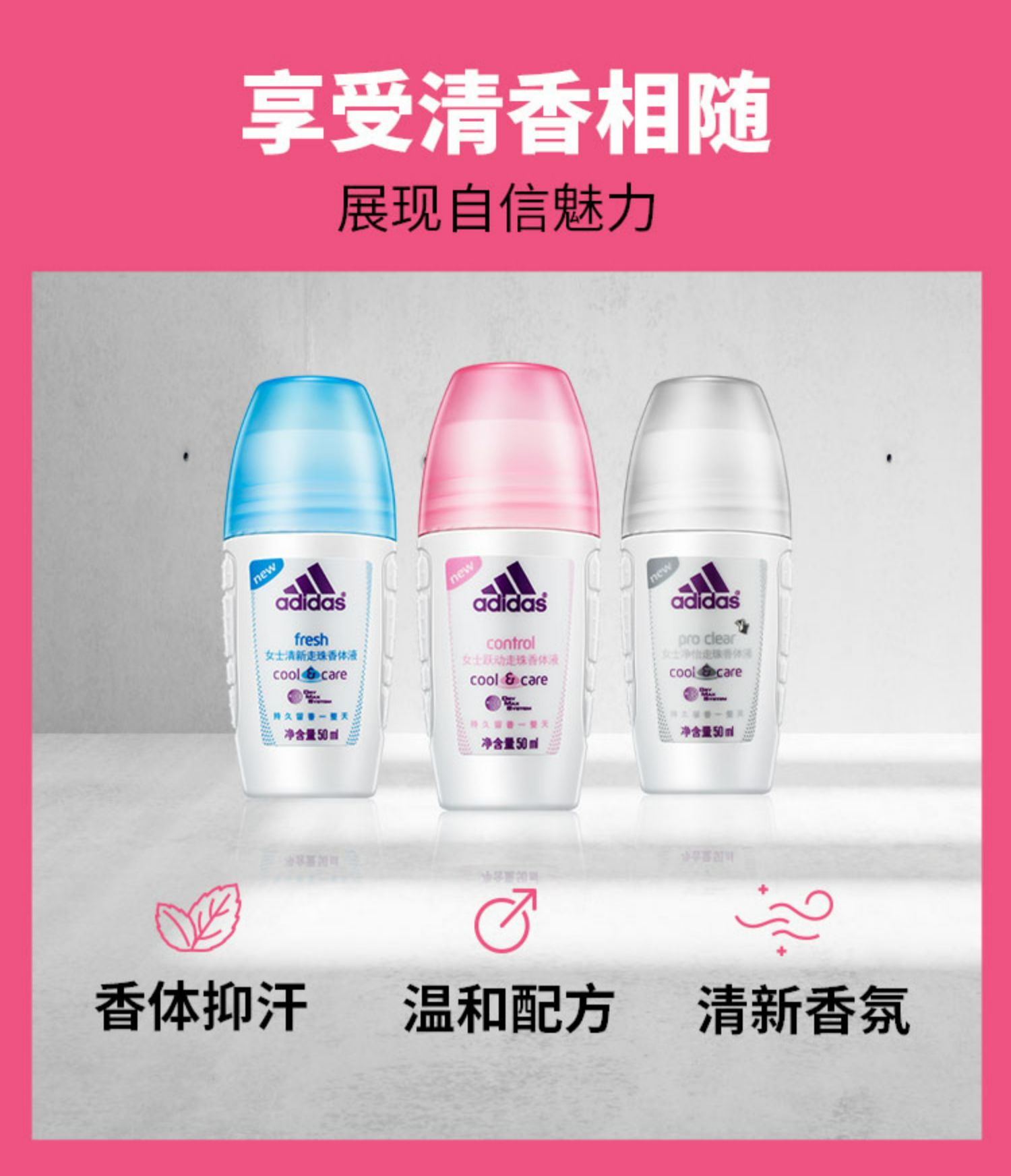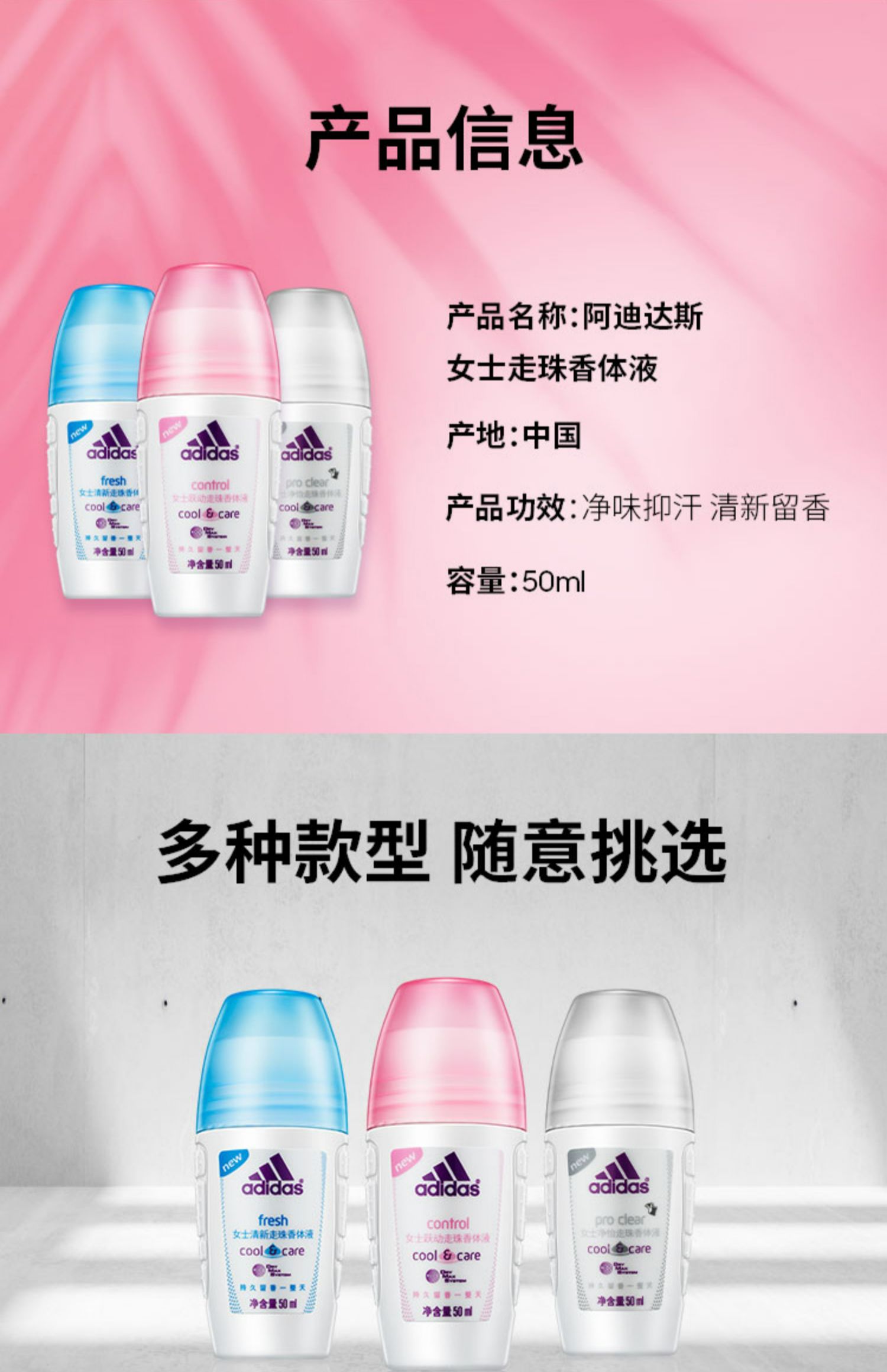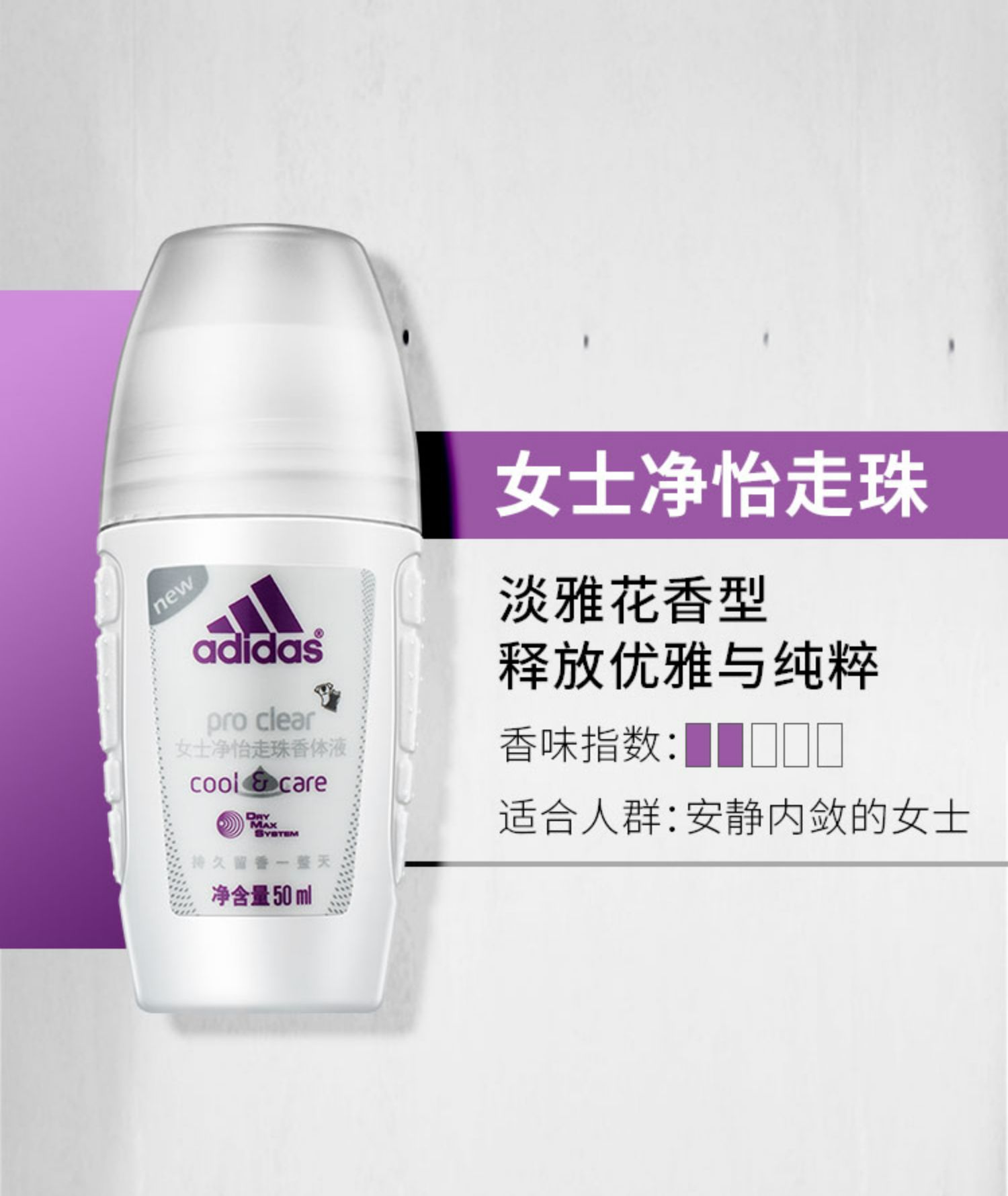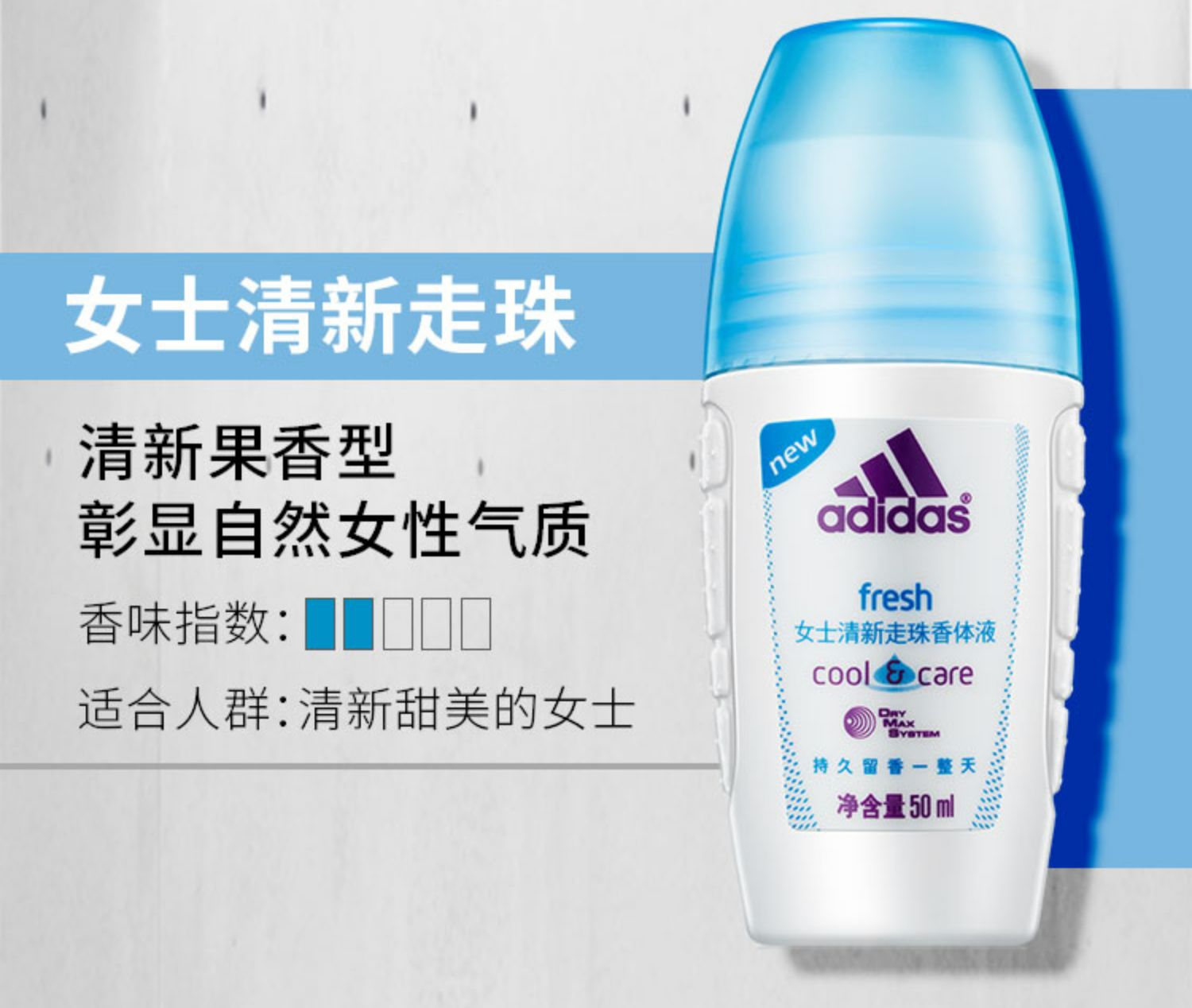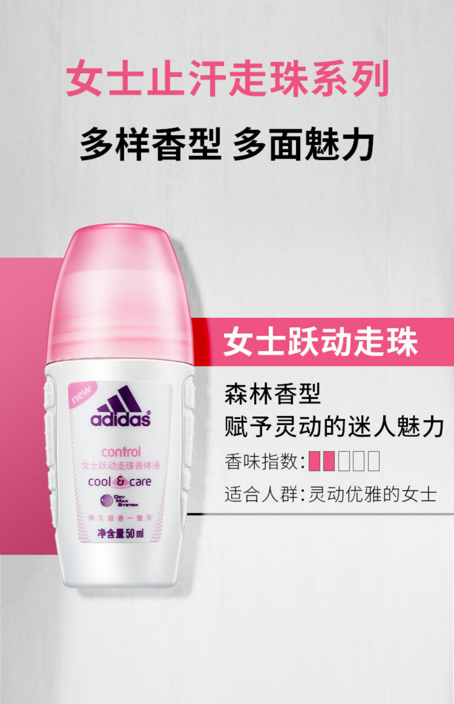 阿迪达斯女士清新走珠香体液50ml(单位:瓶) 白色