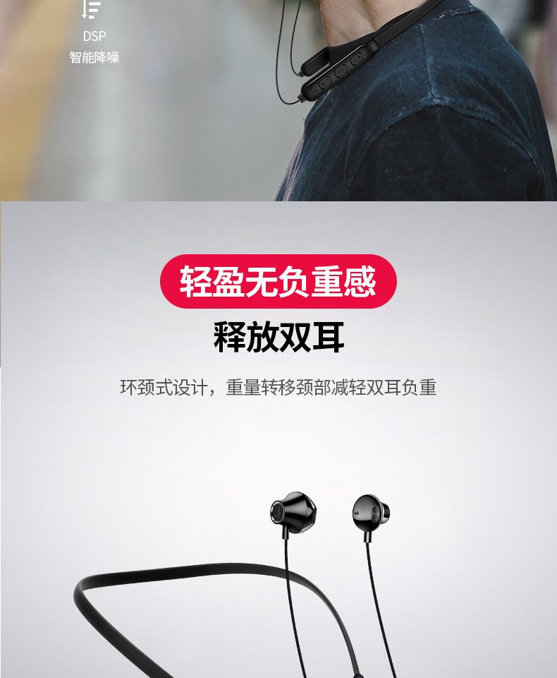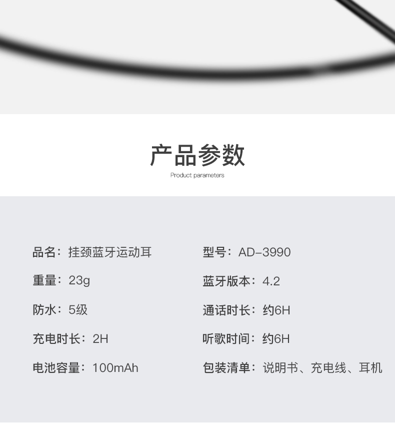 颐电 挂颈蓝牙运动耳机 AD-3990 黑色 黑色