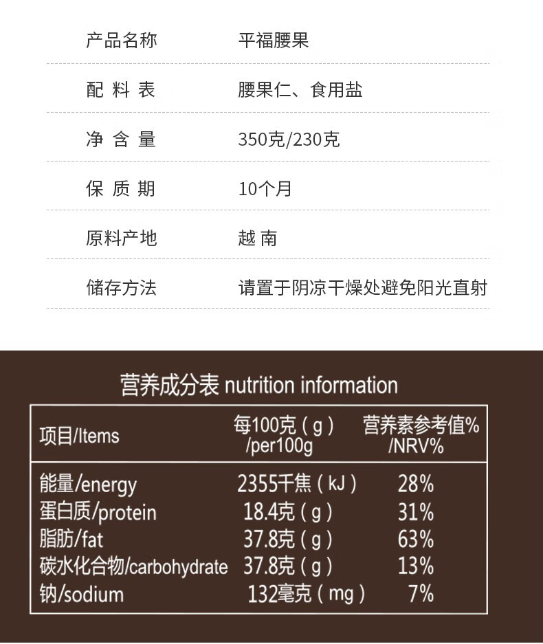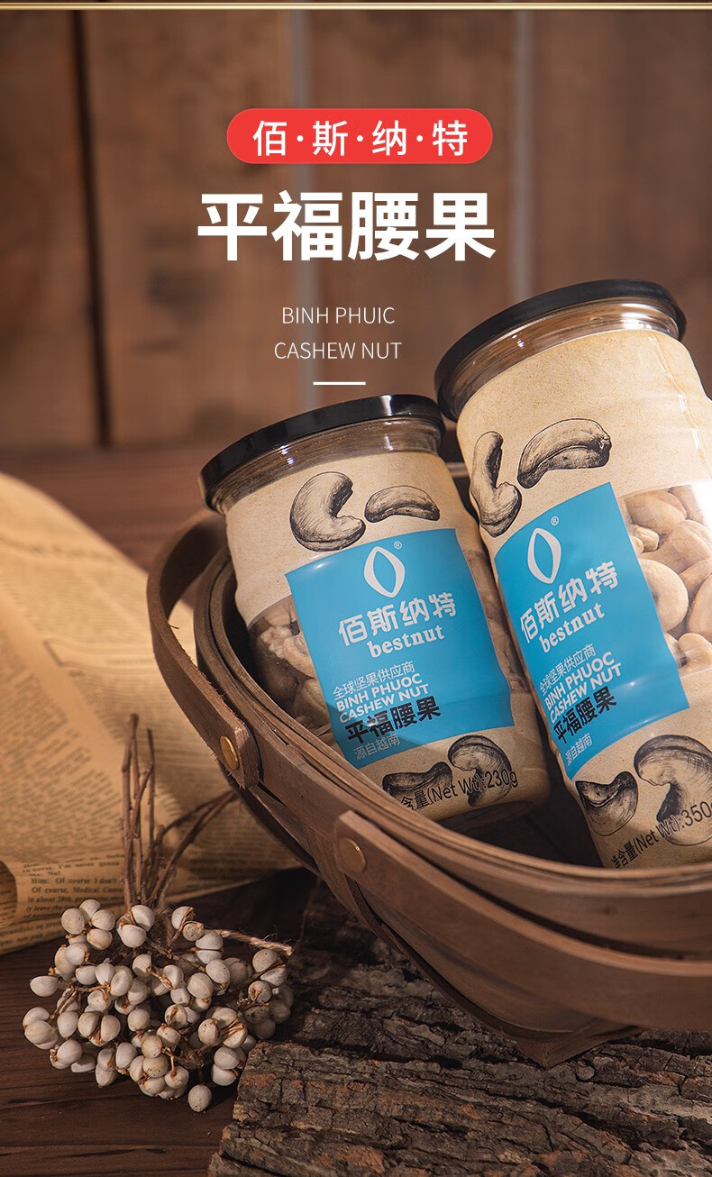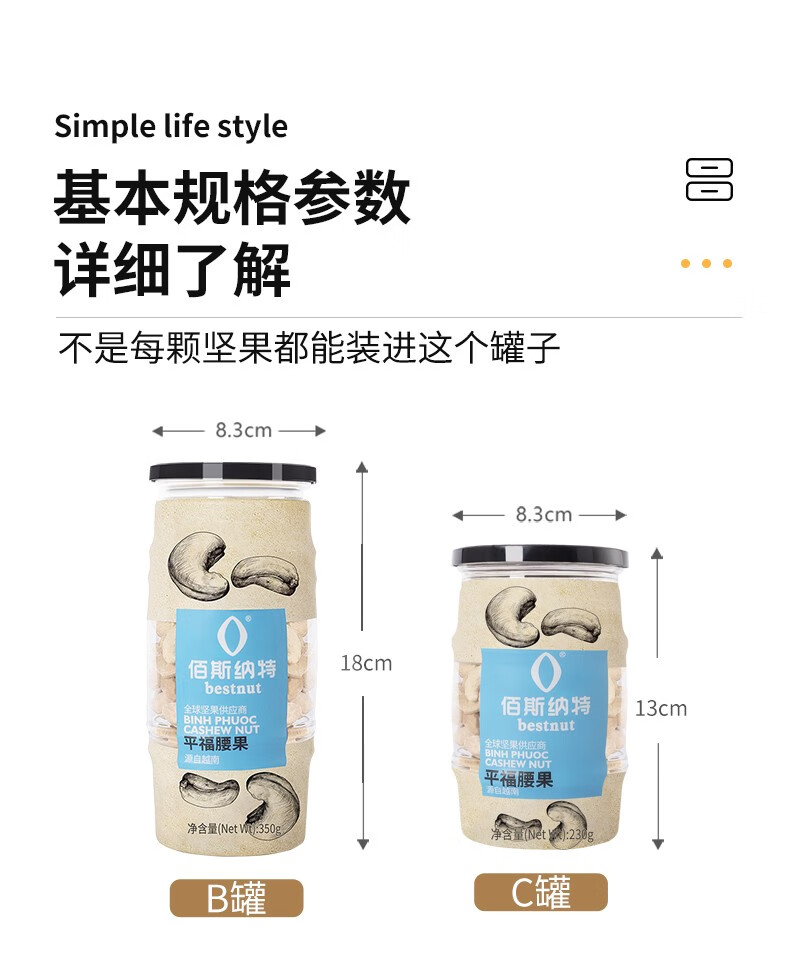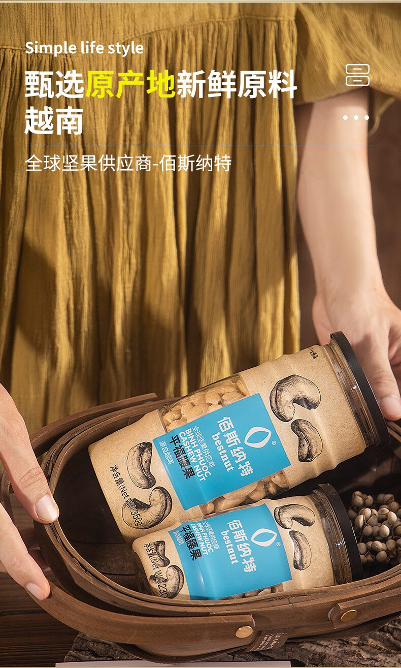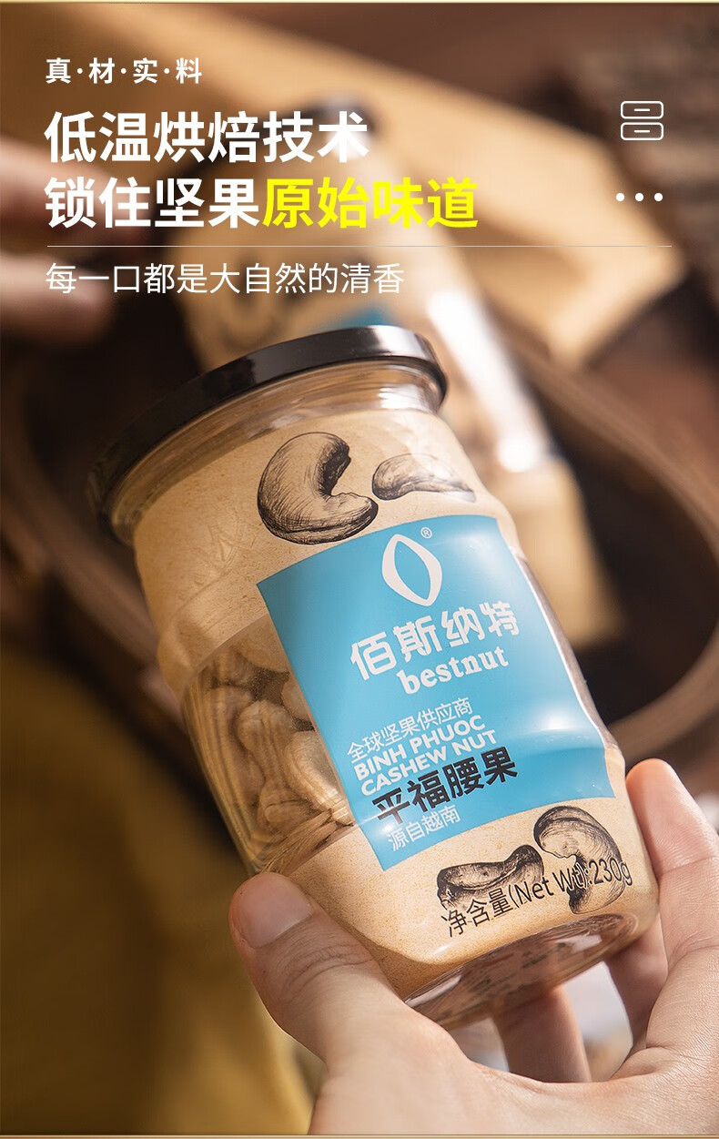 佰斯纳特(bestnut) 盐焗腰果仁 大颗粒果仁罐装坚果炒货越南特产进口干果休闲零食小吃年货 【日期新鲜】B罐-350g【越南进口腰果原材料】