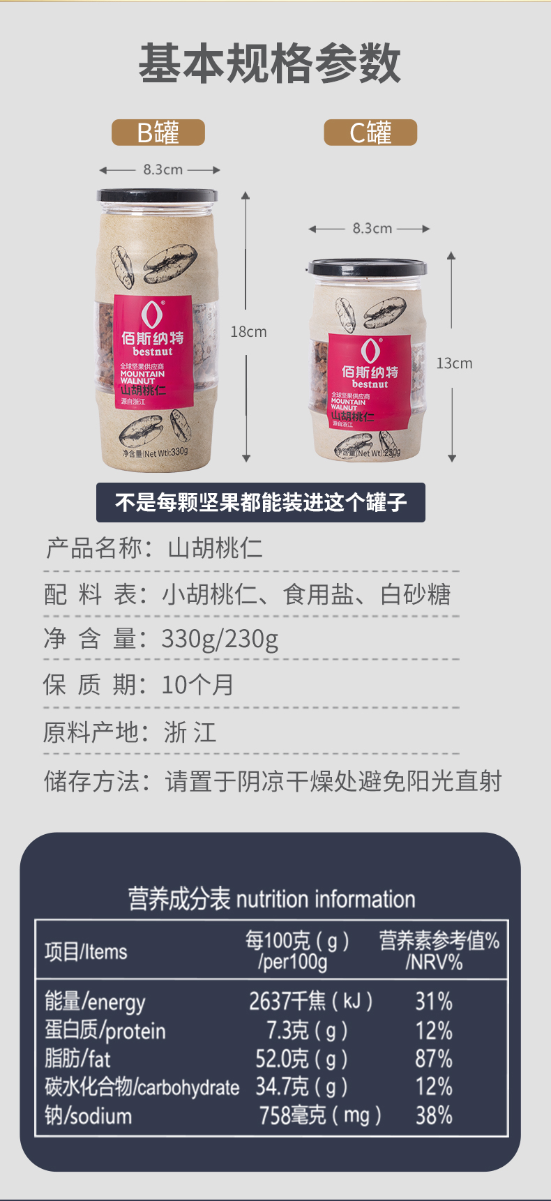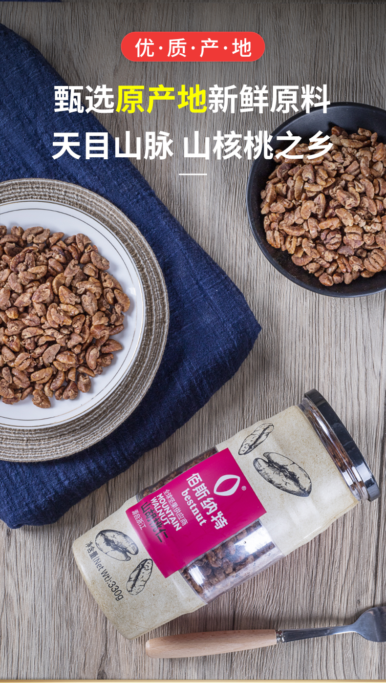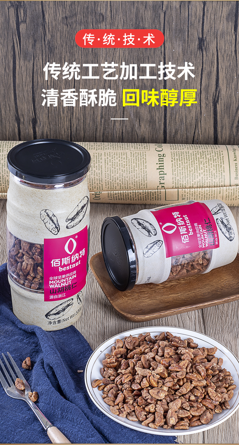 佰斯纳特(bestnut) 小山核桃仁 无壳免剥小山胡桃仁罐装坚果炒货临安特产干果休闲零食小吃 【日期新鲜】C罐/230g【原材料选自山核桃之乡】