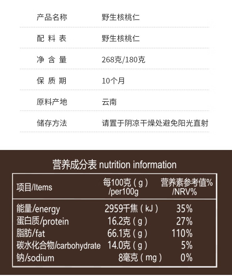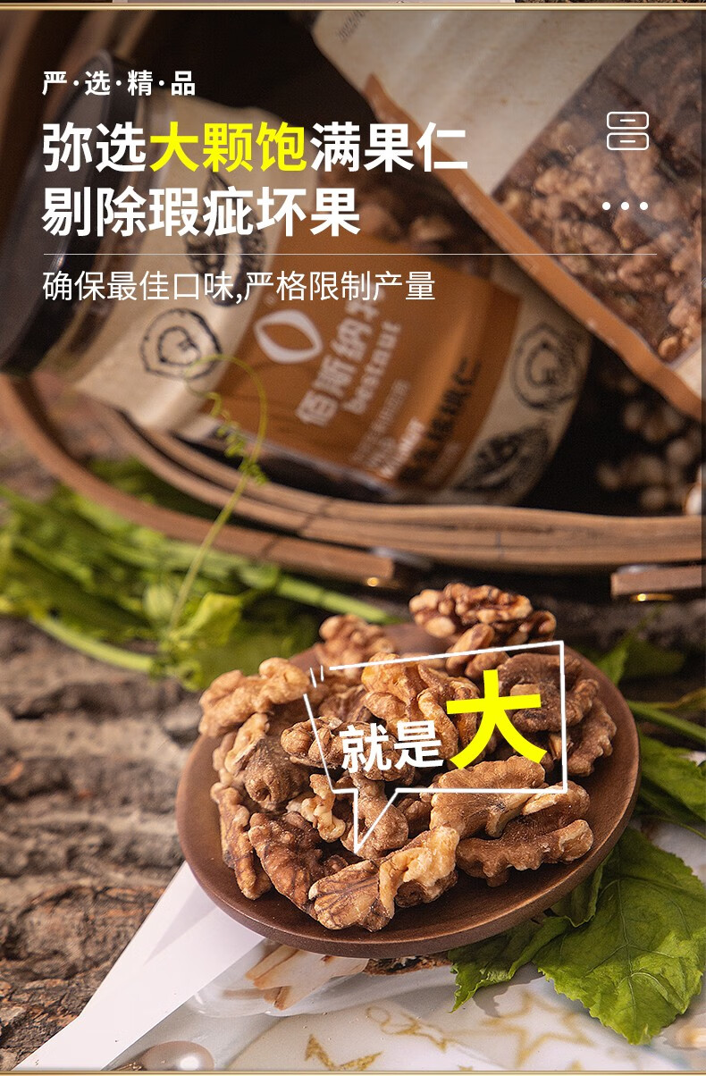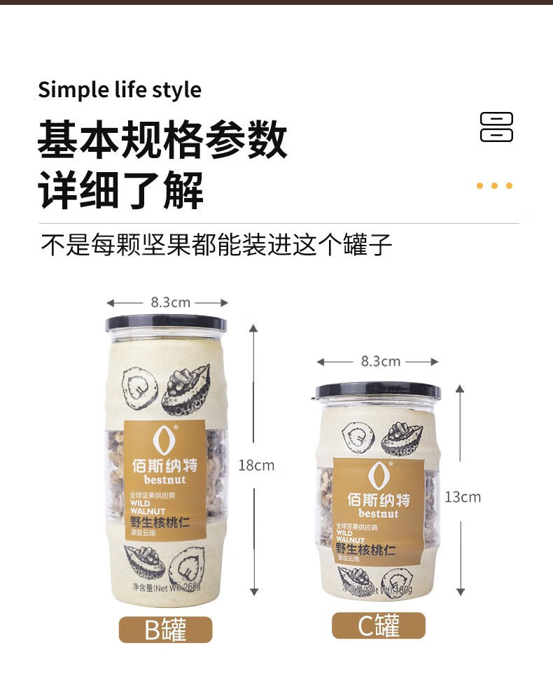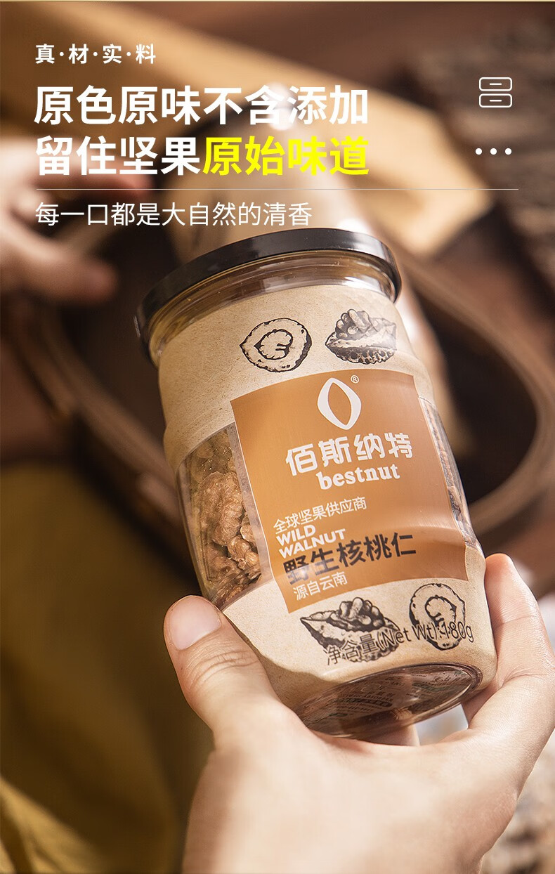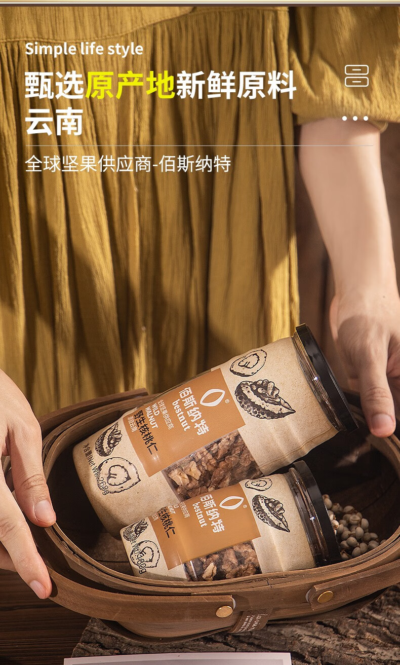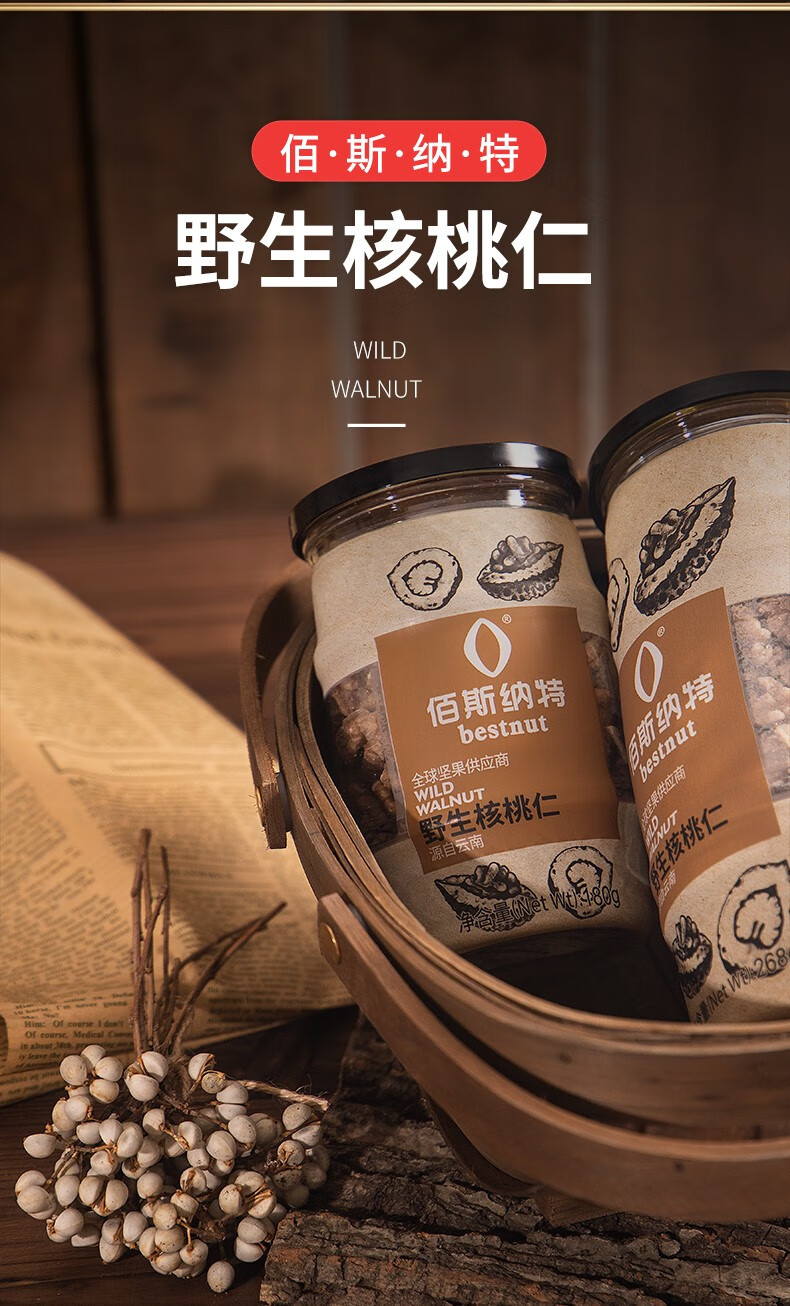 佰斯纳特(bestnut) 野生核桃仁 大颗核免剥桃仁罐装坚果炒货云南特产干果休闲零食小吃年货 【日期新鲜】B罐/268g【云南精选野生核桃原料】
