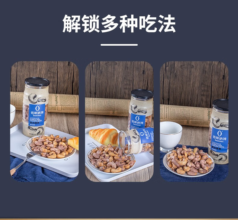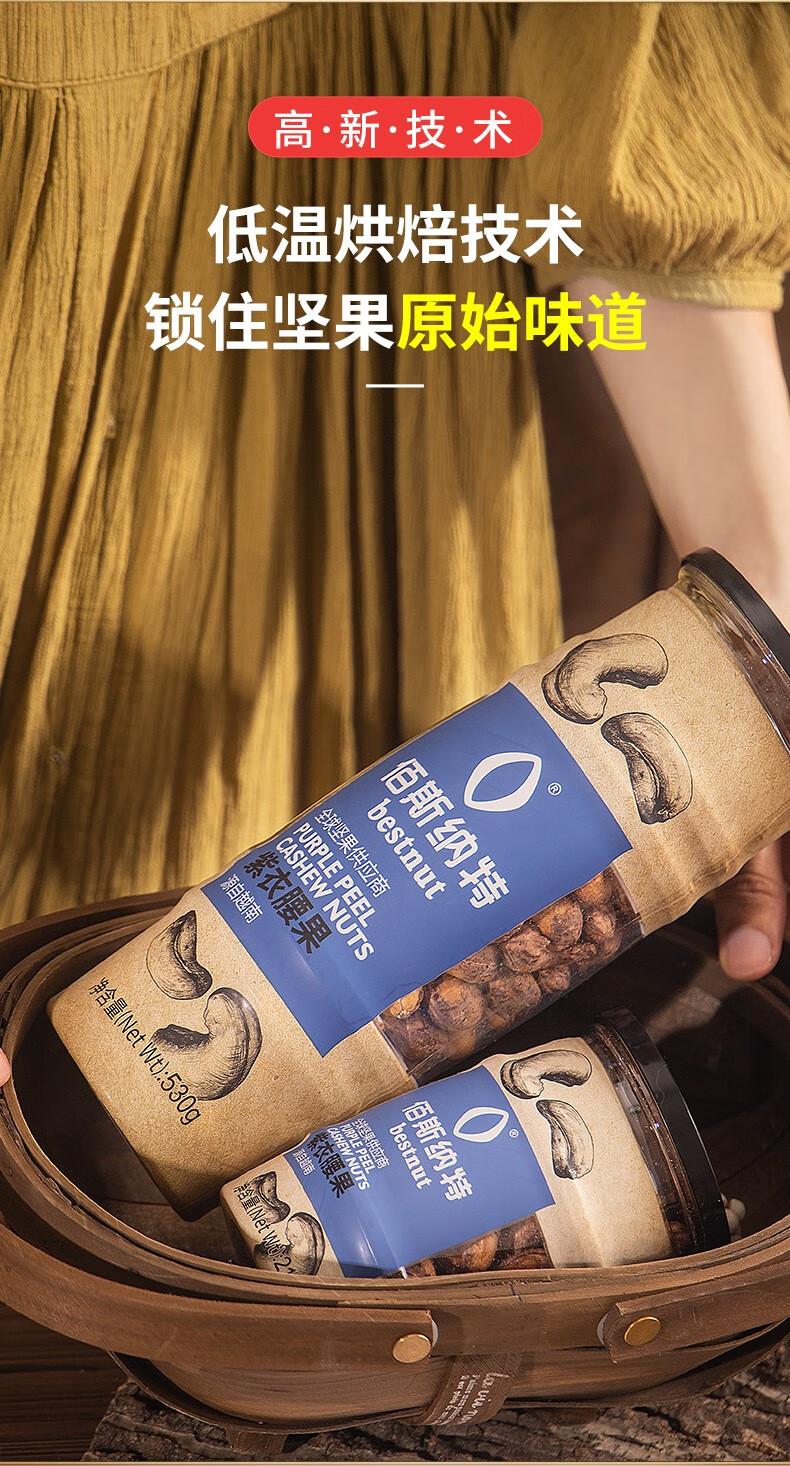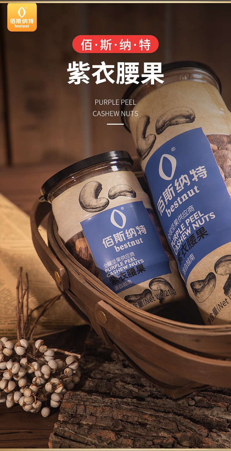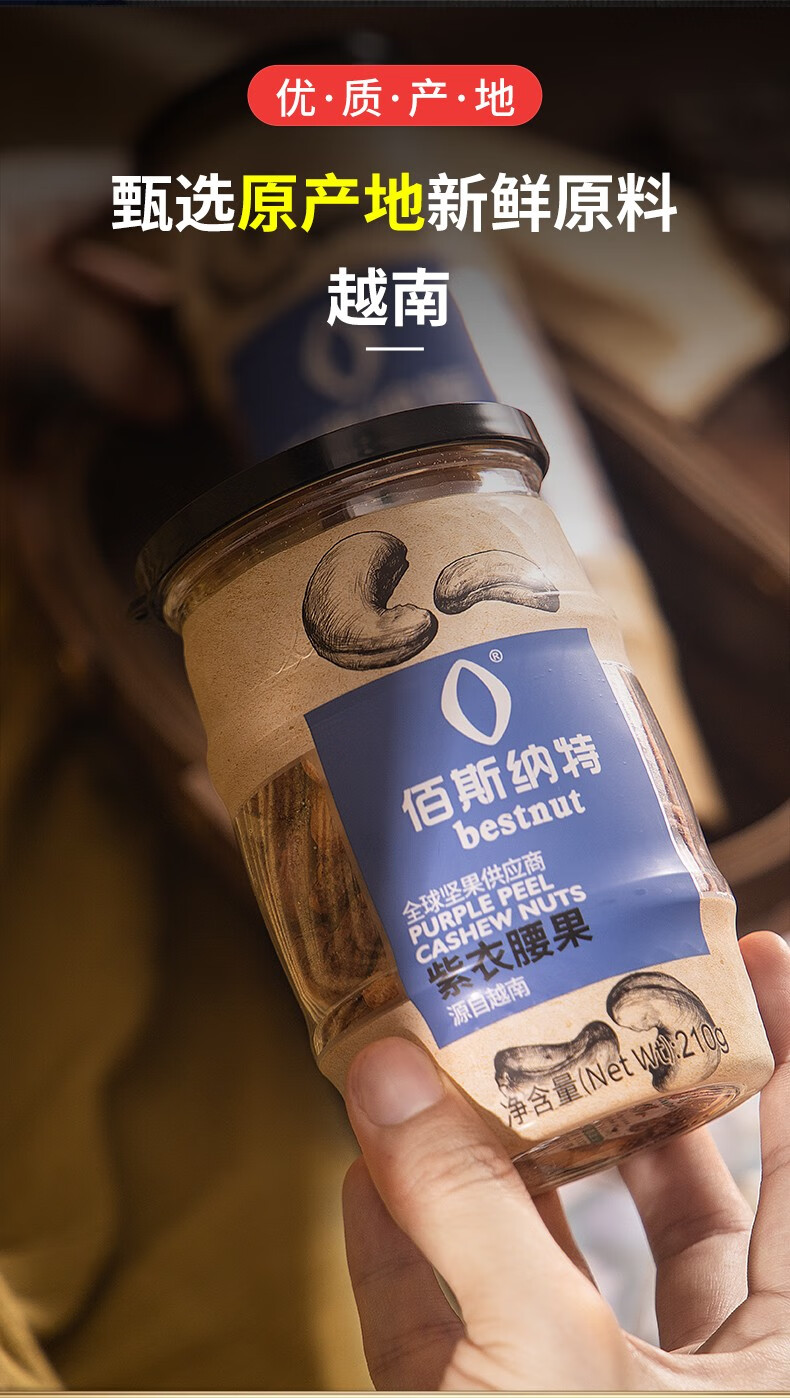 佰斯纳特(bestnut) 紫衣腰果仁 大颗粒带皮腰果罐装坚果炒货越南进口干果休闲零食小吃年货 【日期新鲜】B罐/320g【甄选大颗粒进口原材料】