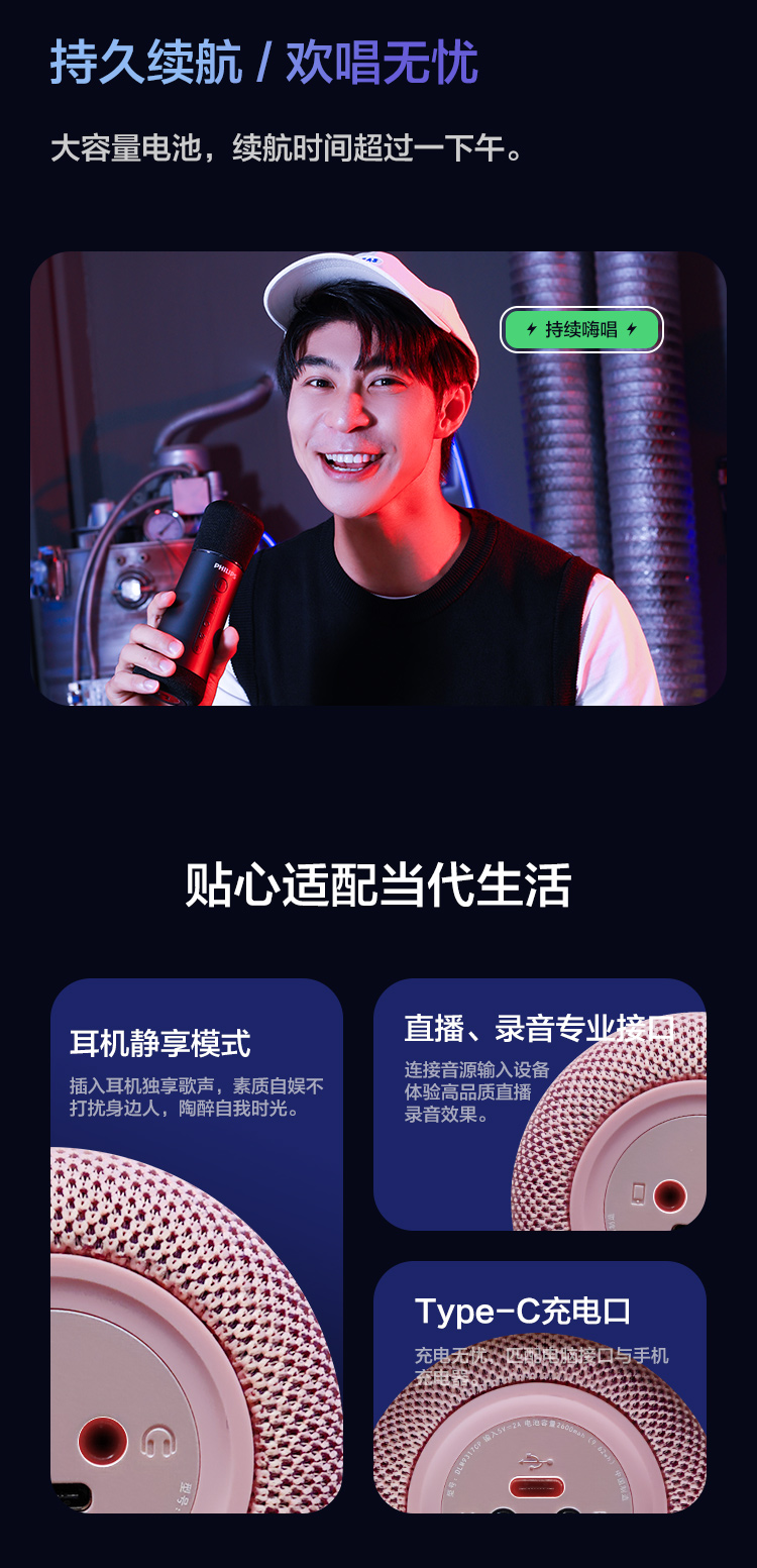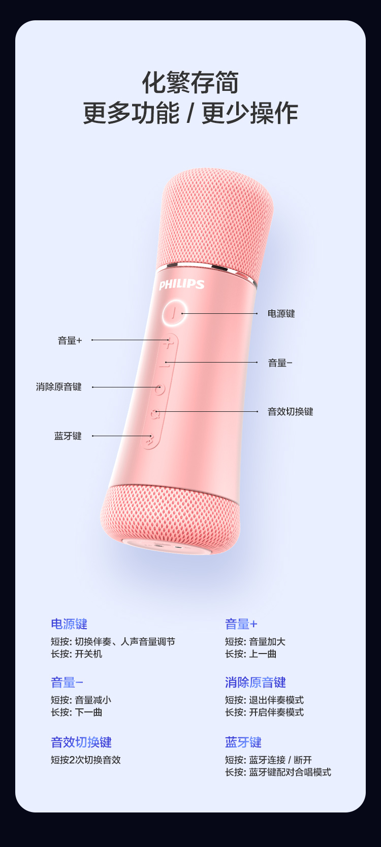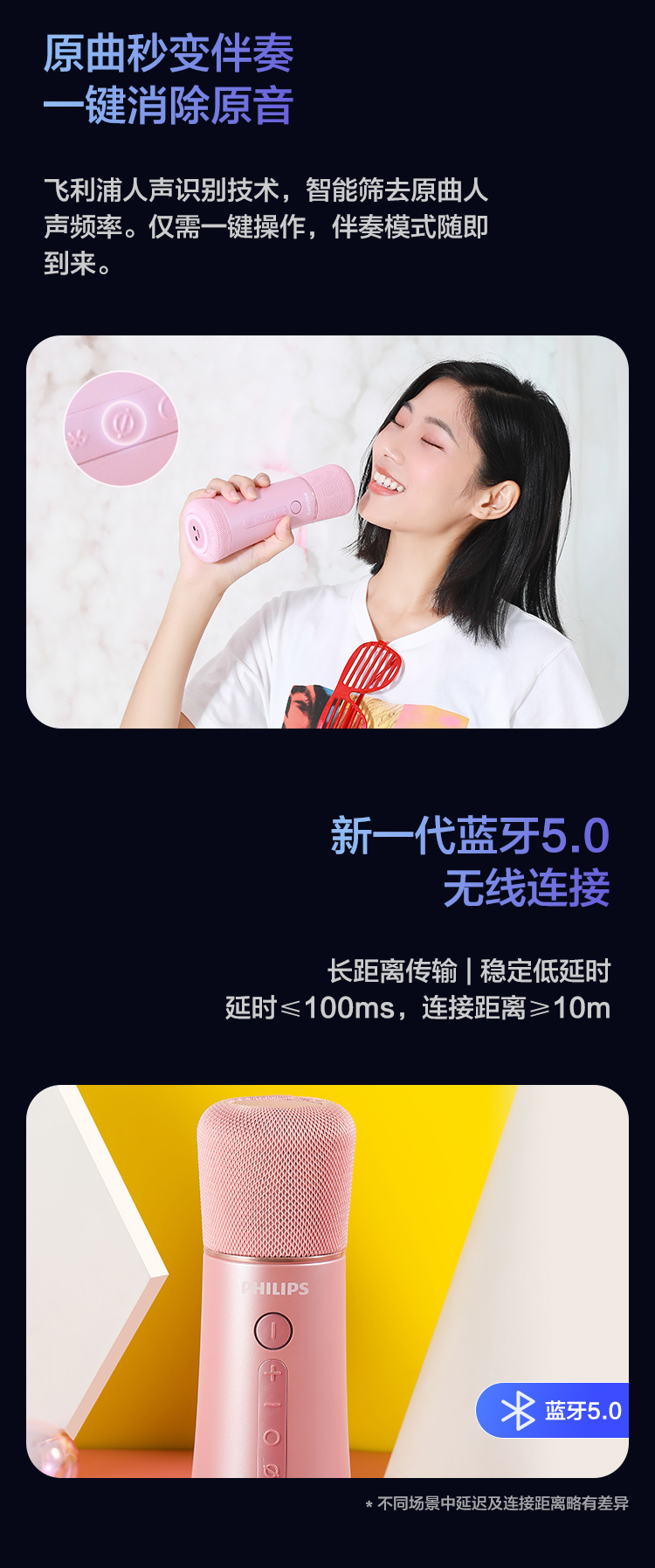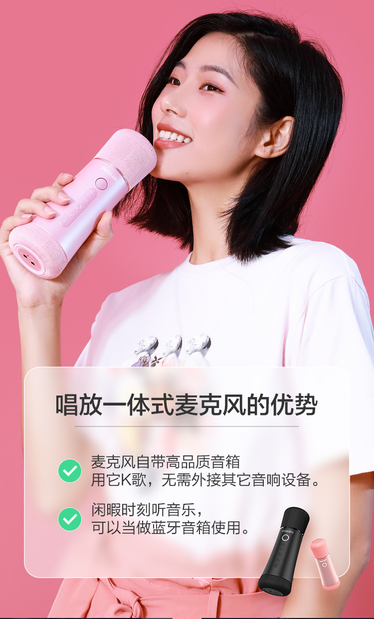 飞利浦 唱放一体麦克风 DLM9317C粉色 粉色