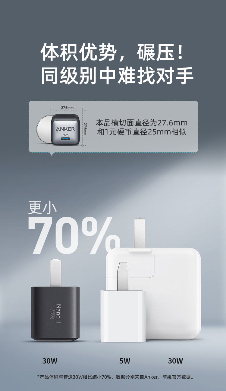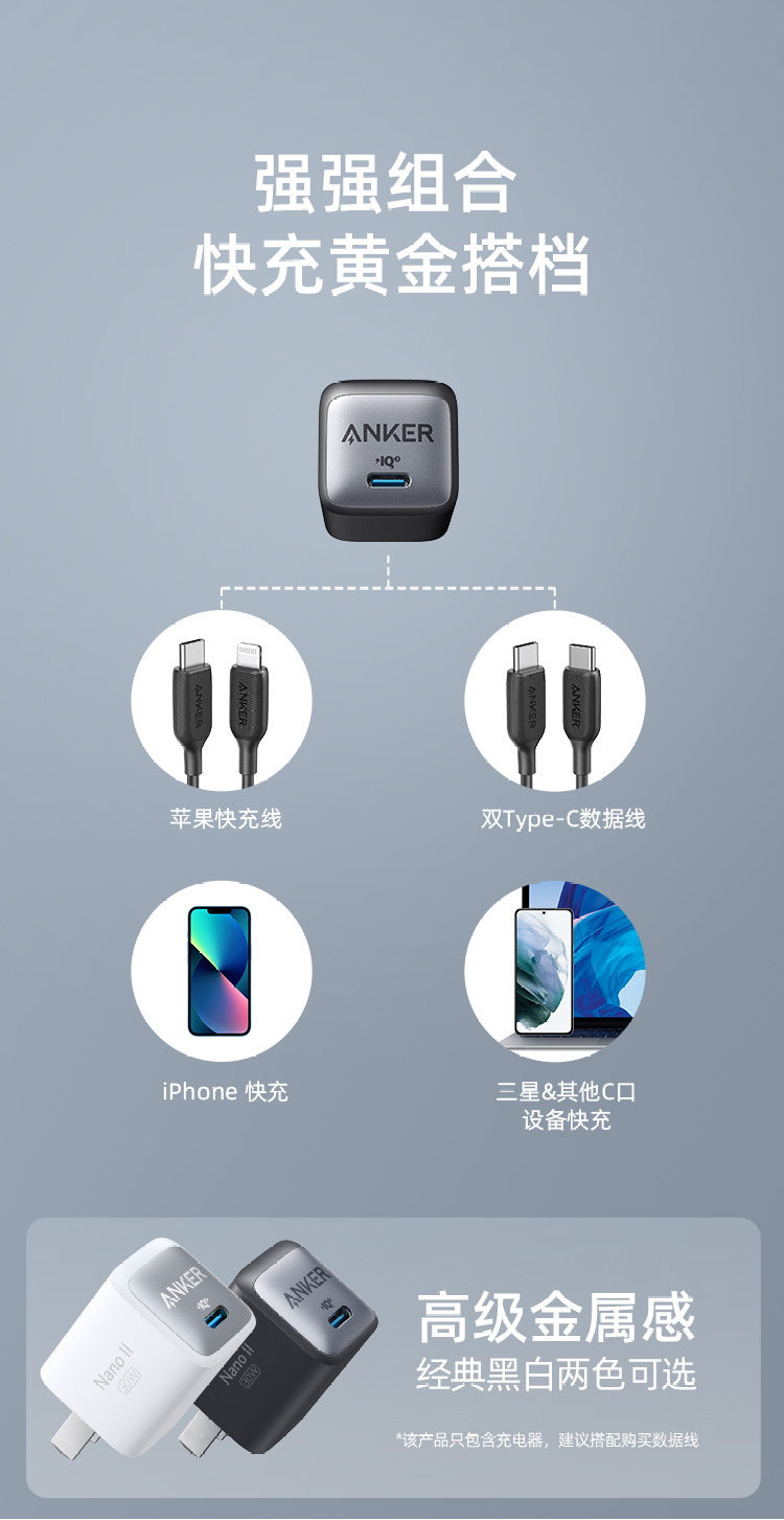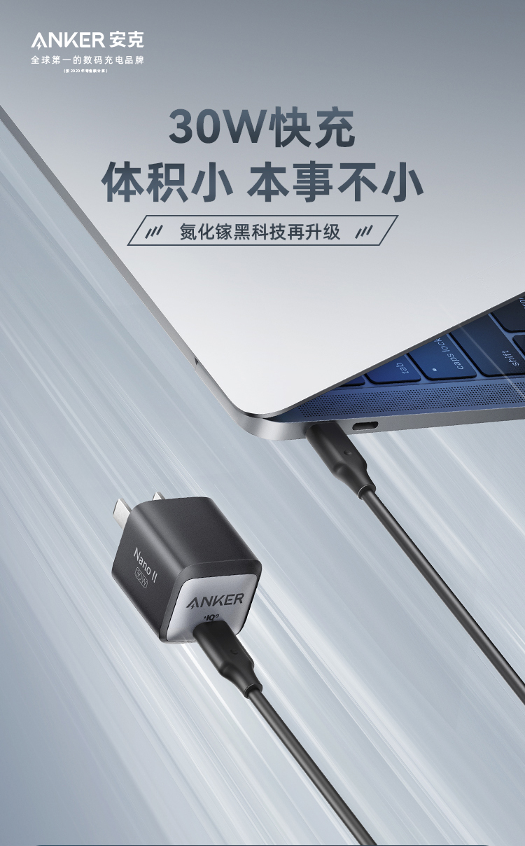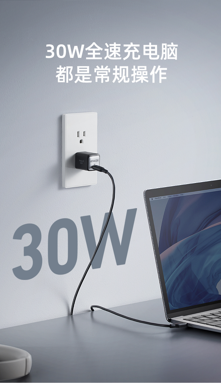 安克30W快充 充电器A2146P11 黑色
