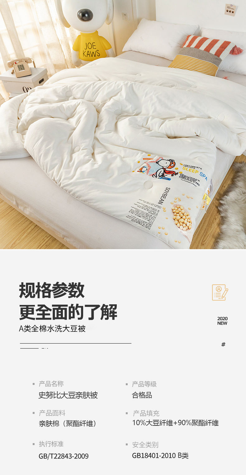 史努比SNOOPY 亲肤棉大豆四季被SNB07-4 白色